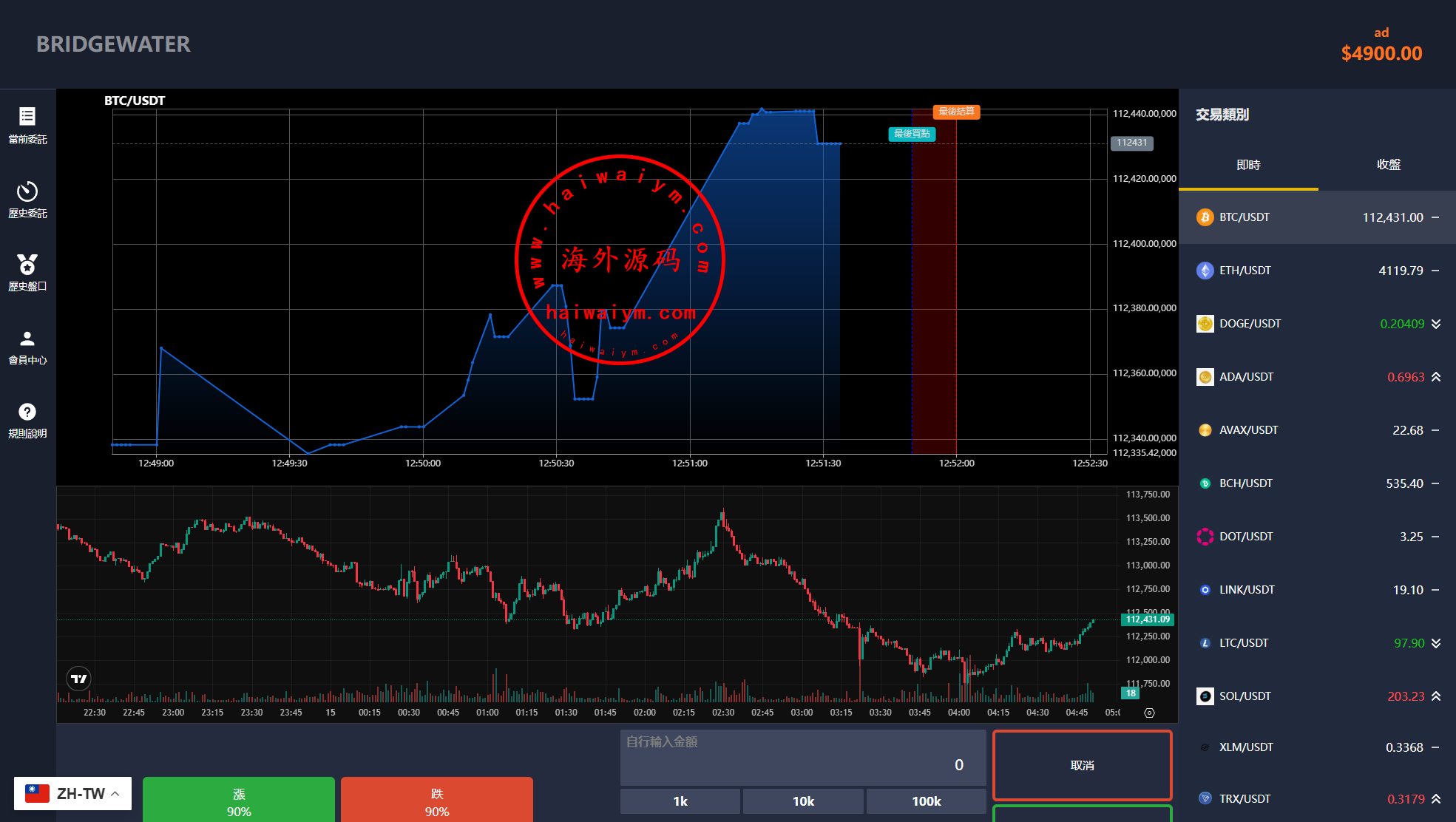 海外交易所系统/秒合约/杠杆交易/投资/K线控制