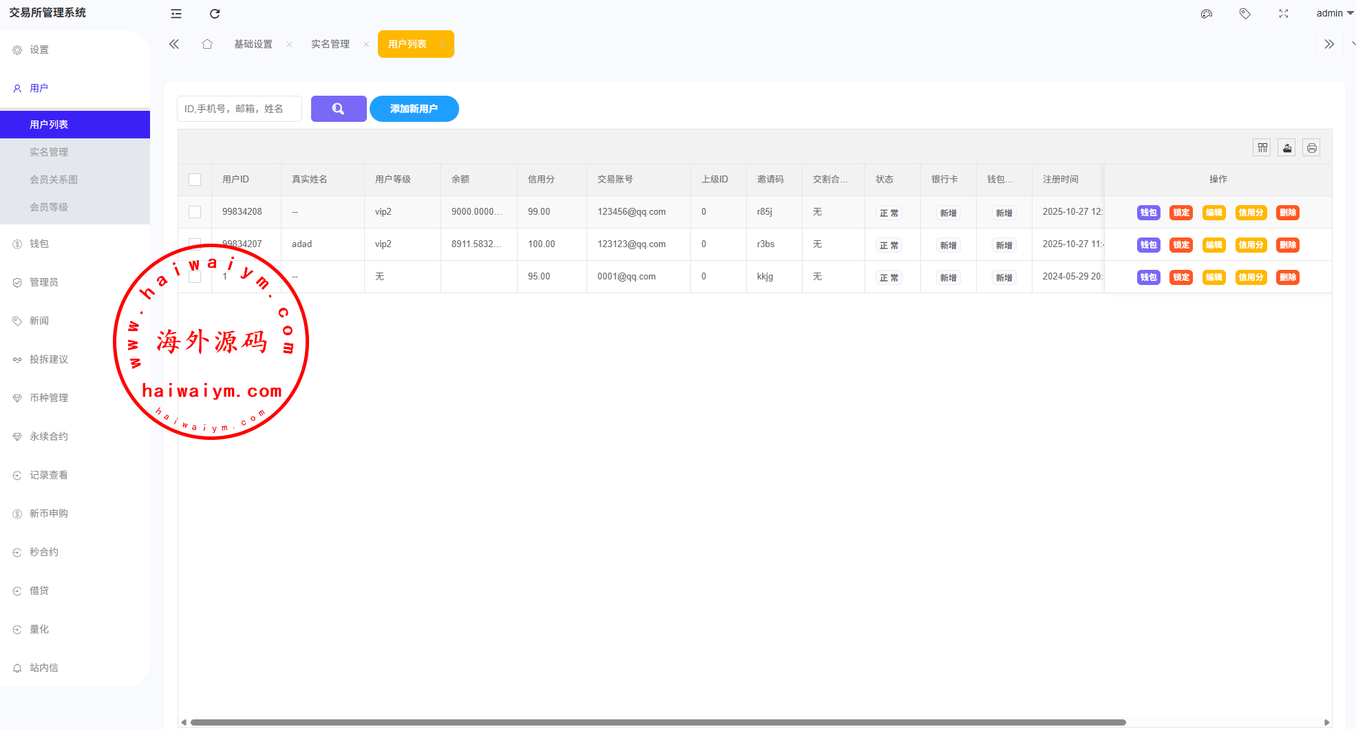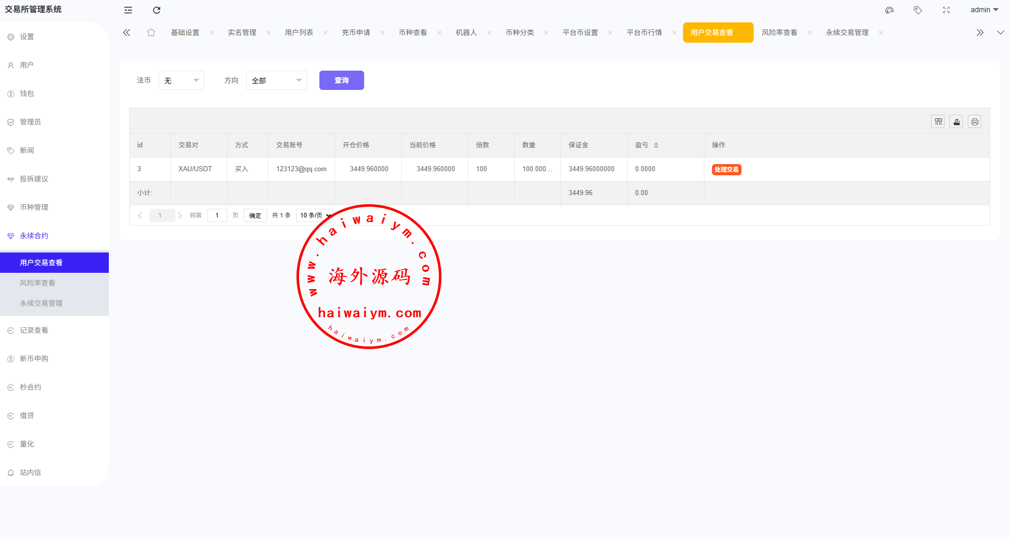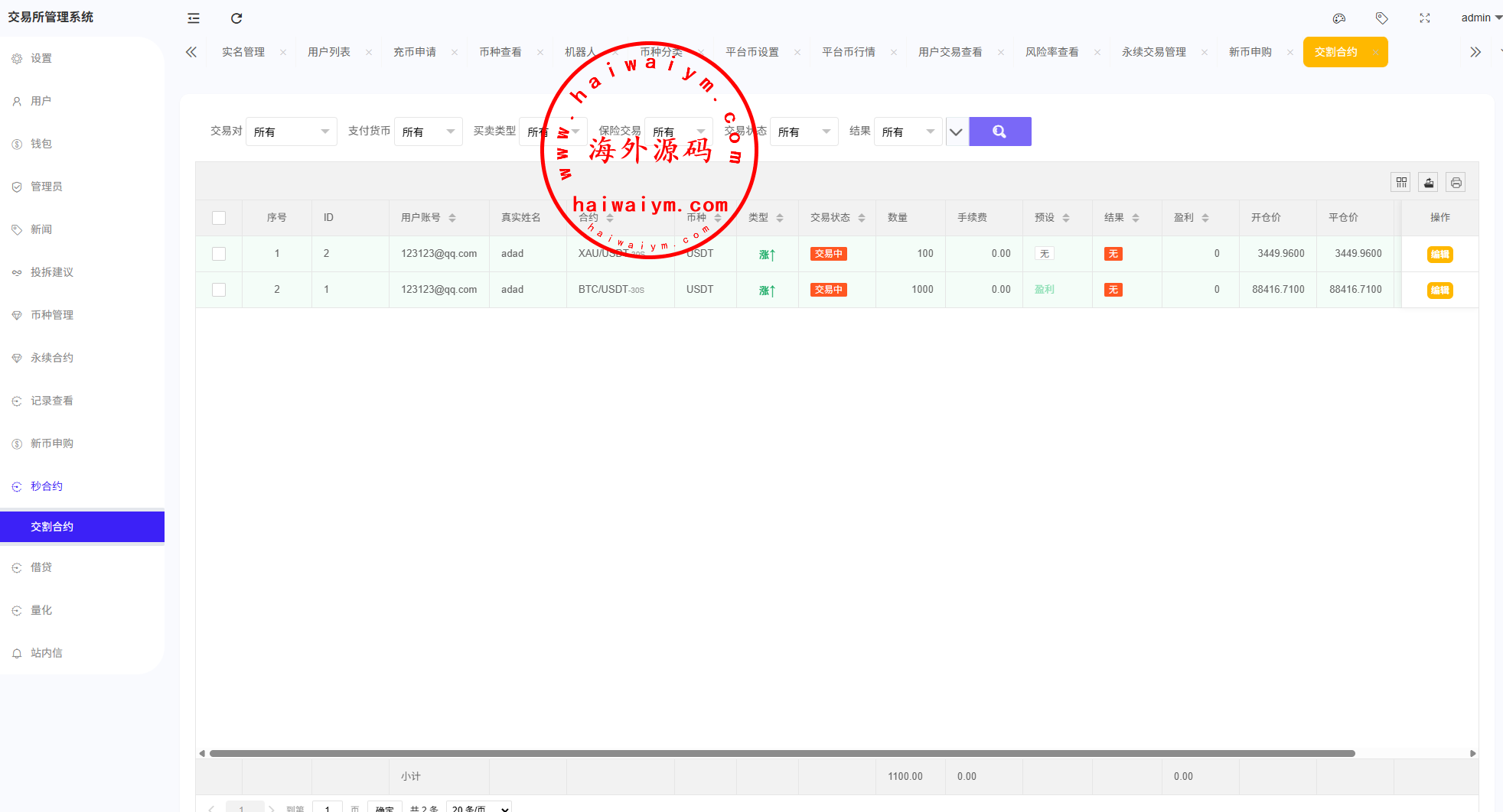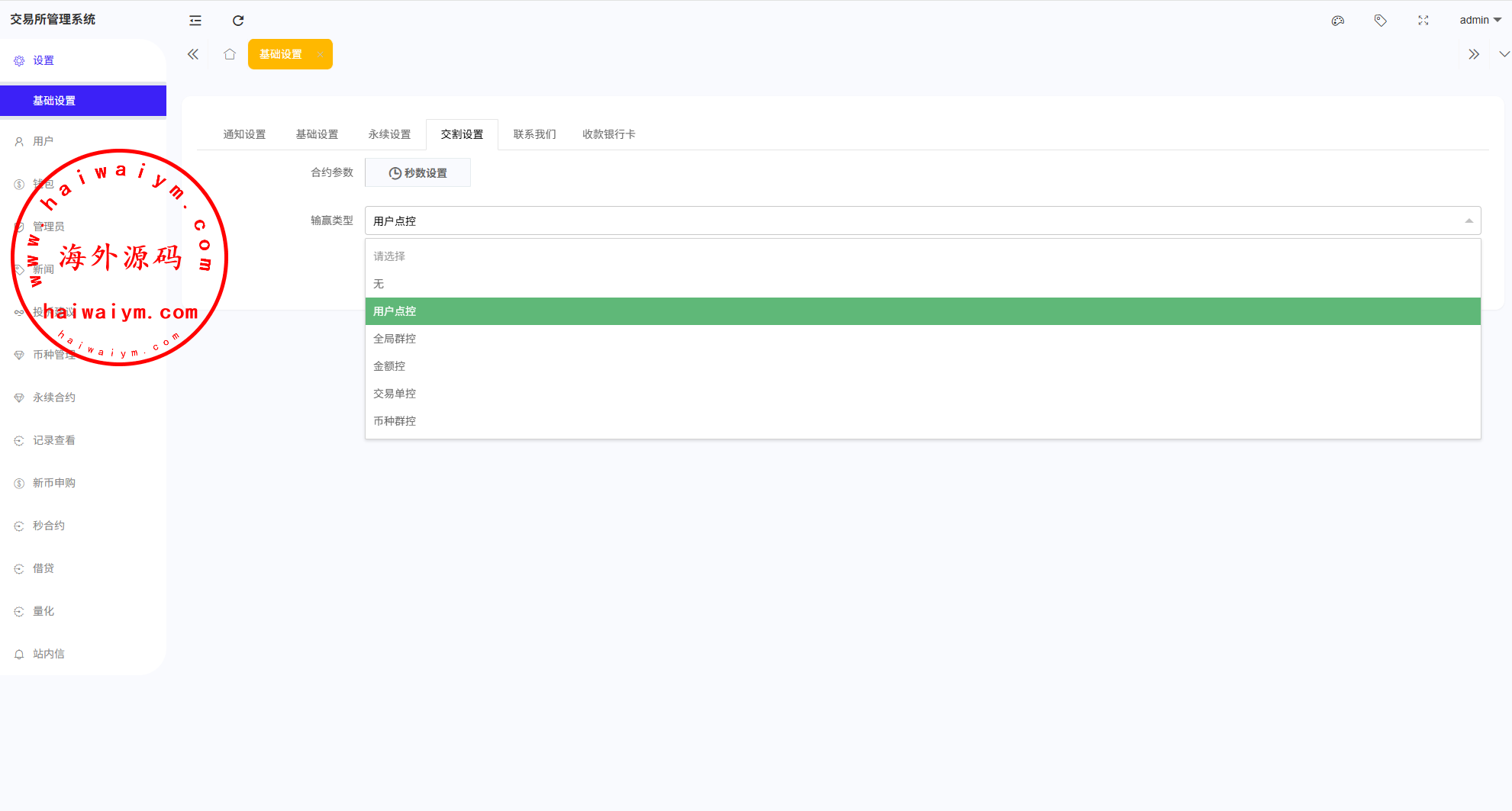 海外交易所系统/合约/期权/质押/秒合约/插针控制/申购