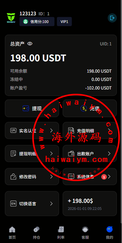 海外虚拟币微盘系统/信用分/实名认证/多语言微交易