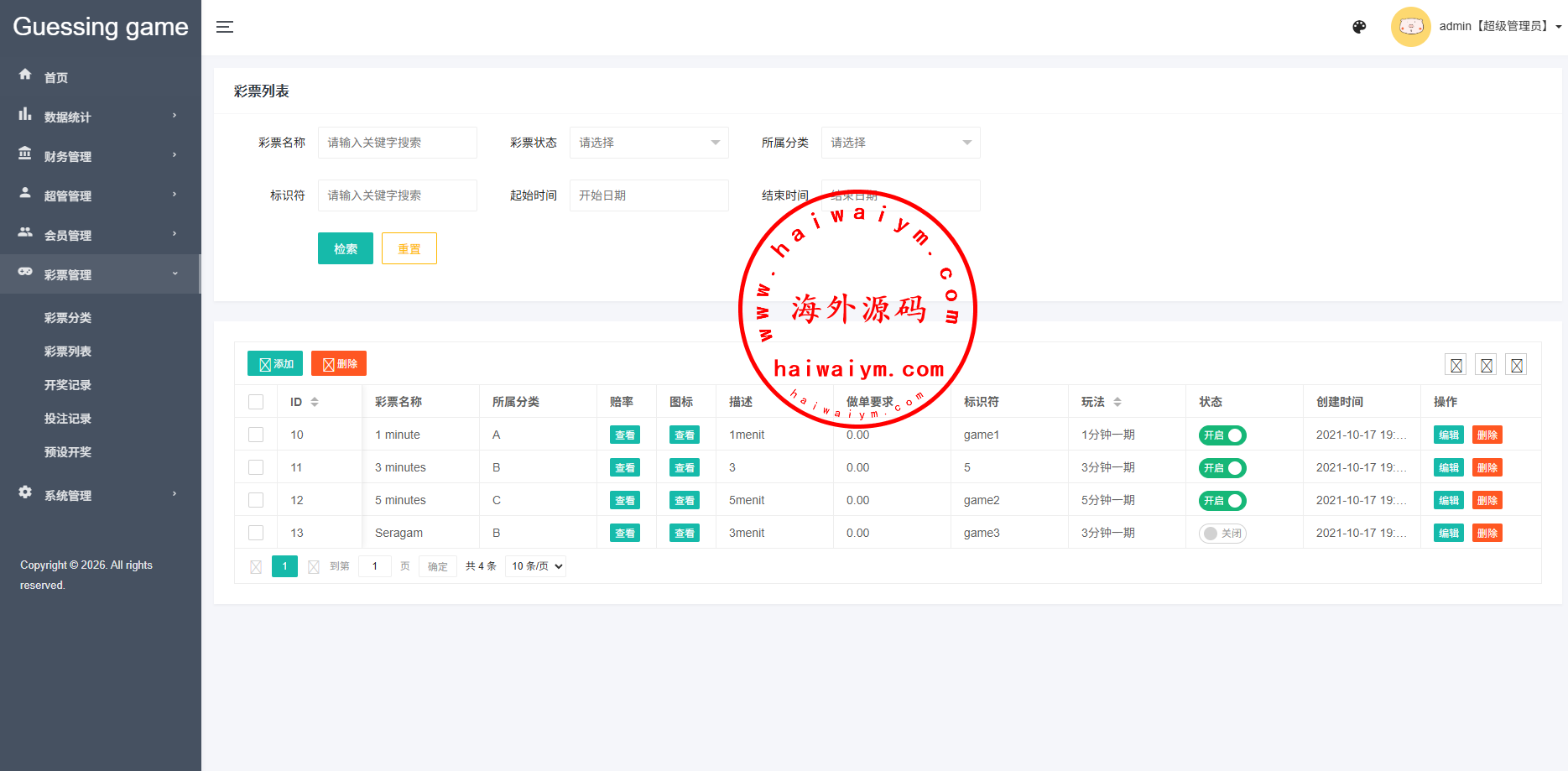 运营版快三竞猜投注系统/多语言彩票/预设系统彩