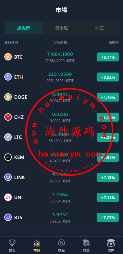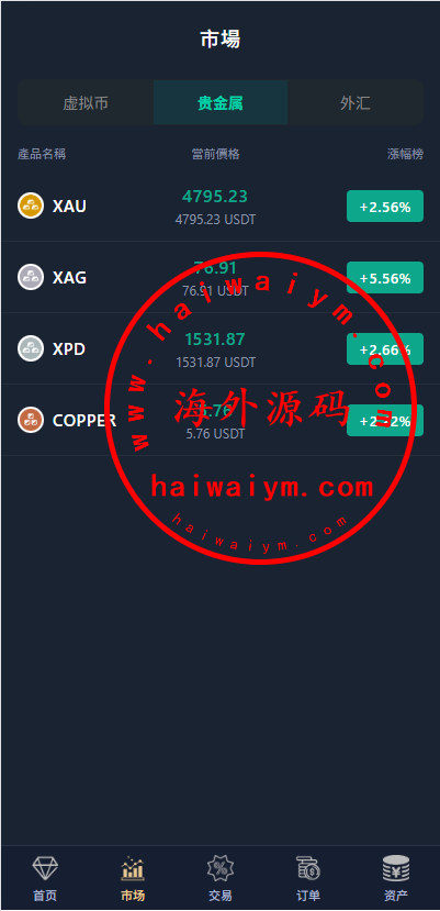 前端产品支持虚拟币,贵金属,外汇,行情使用免费接口