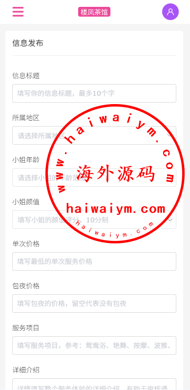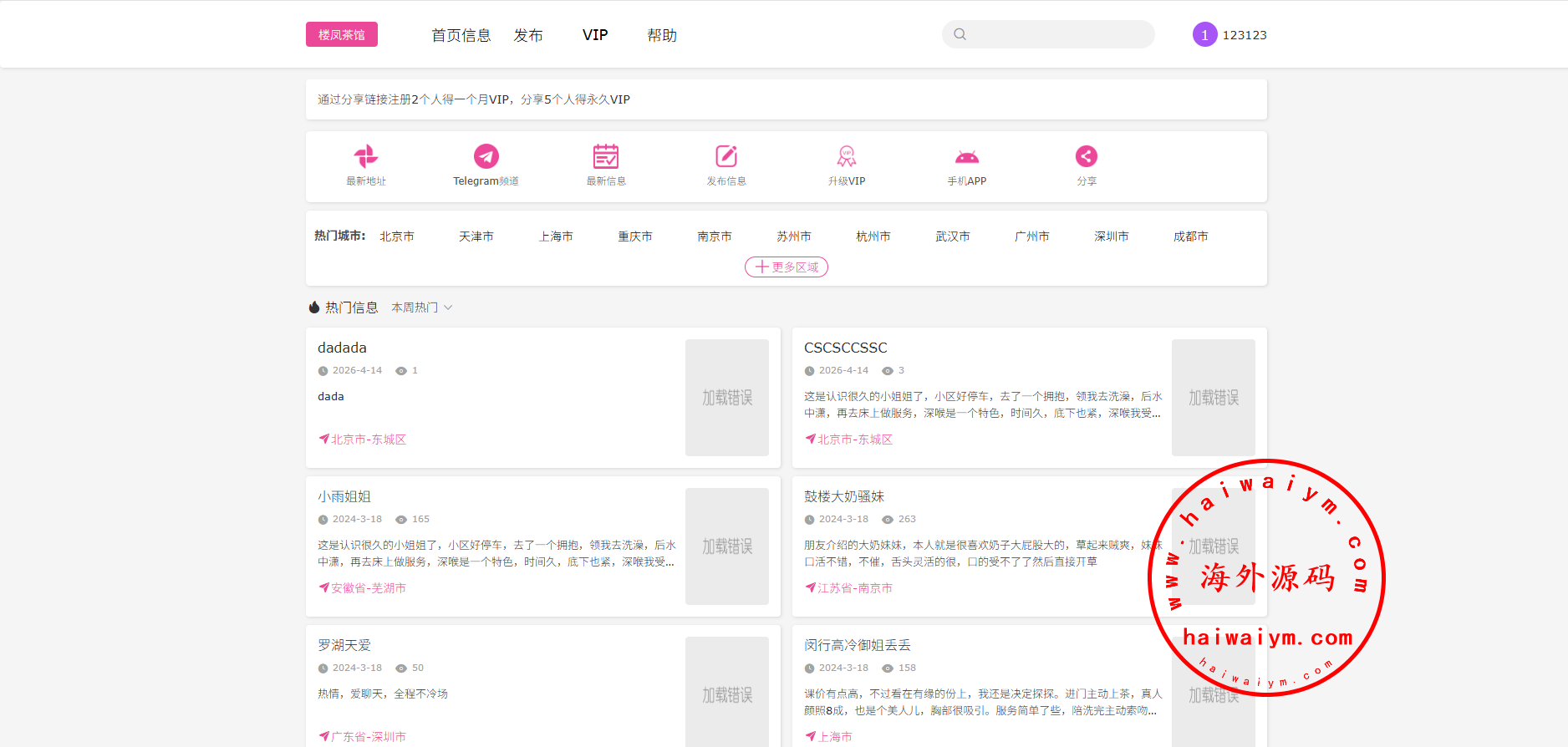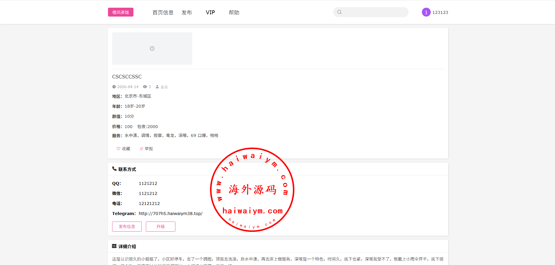 JAVA版同城楼凤系统/楼凤茶馆/信息发布/信息网此套是开源版本,前端uniapp开发电脑手机自适应,后台VUE,服务端JAVA开发全开源