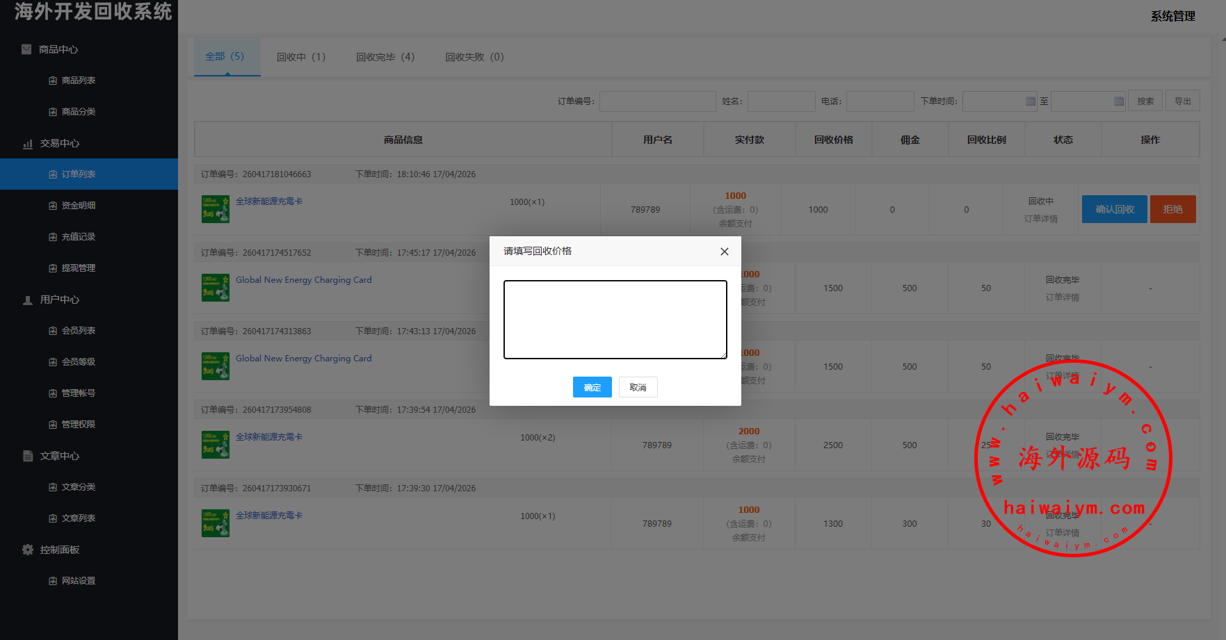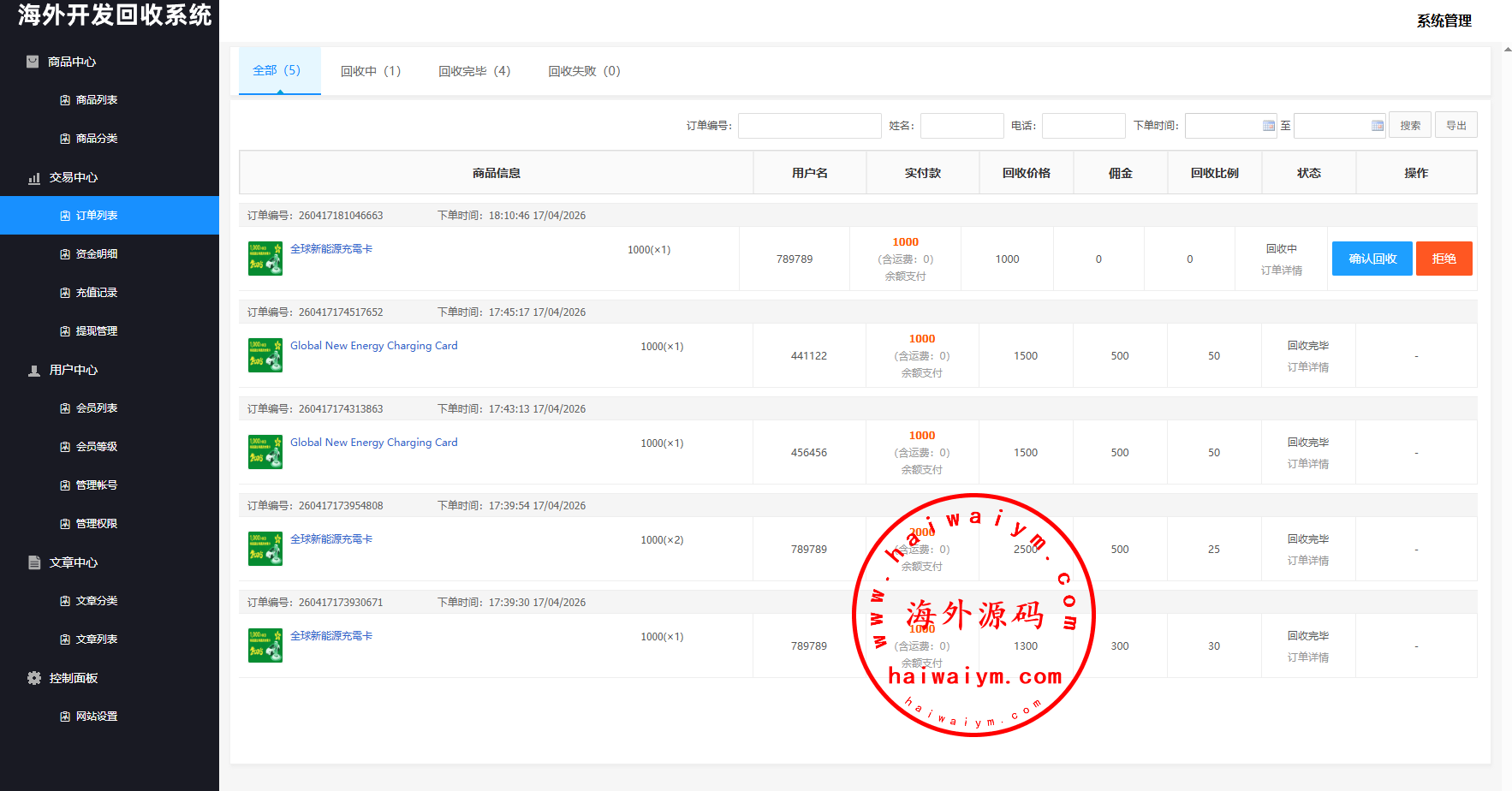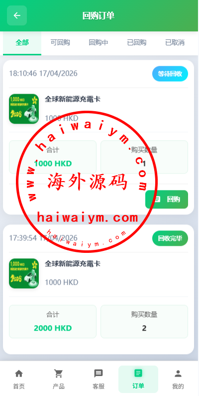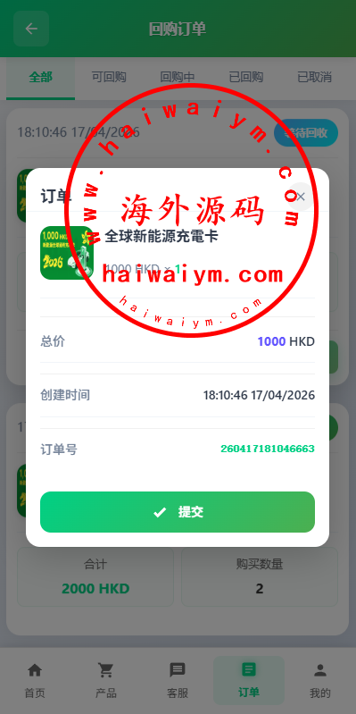 海外新能源商品回收系统/自定义回收/信用分/多语言订单回收
