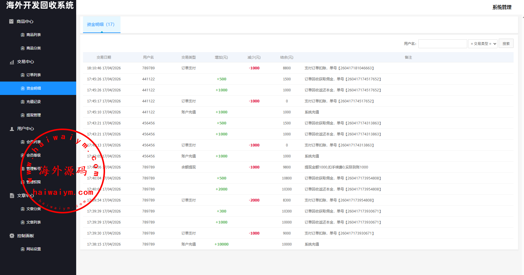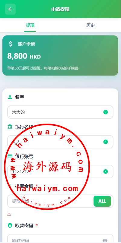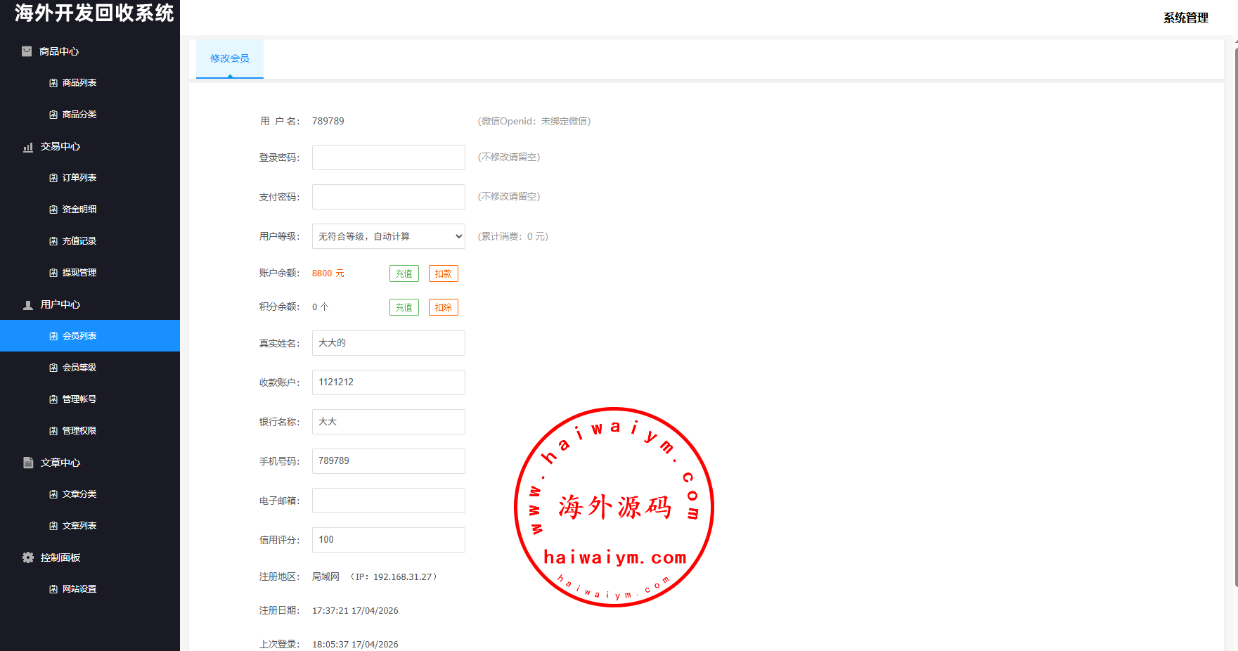系统支持:访问邀请码,自定义回收价格,信用分,充值汇率,默认货币,权限代理等功能