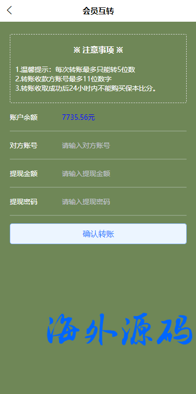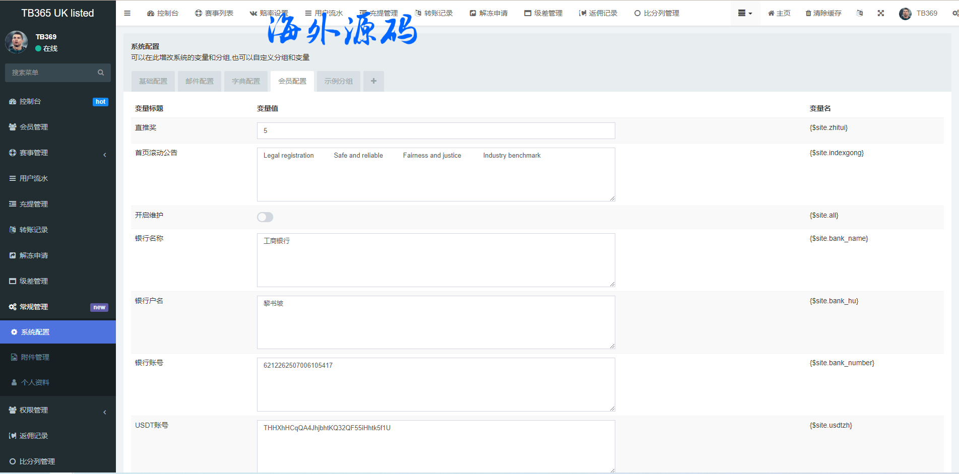 支持USDT充值,会员互转等功能,默认对接的采集球探失效了,需要自行从新对接