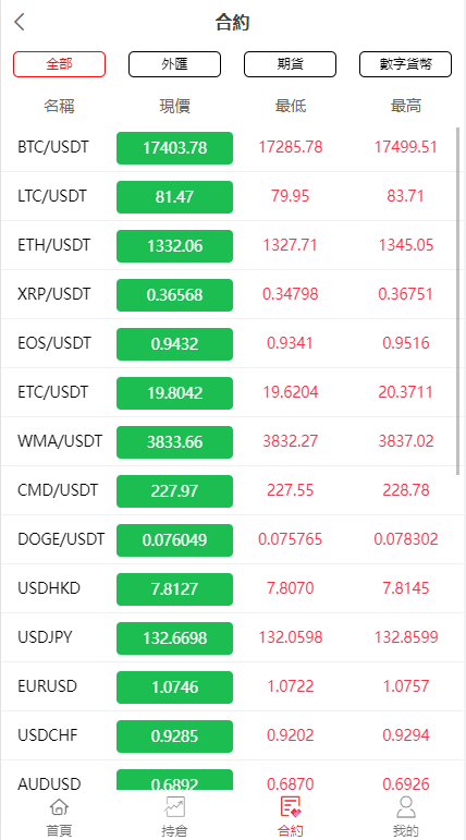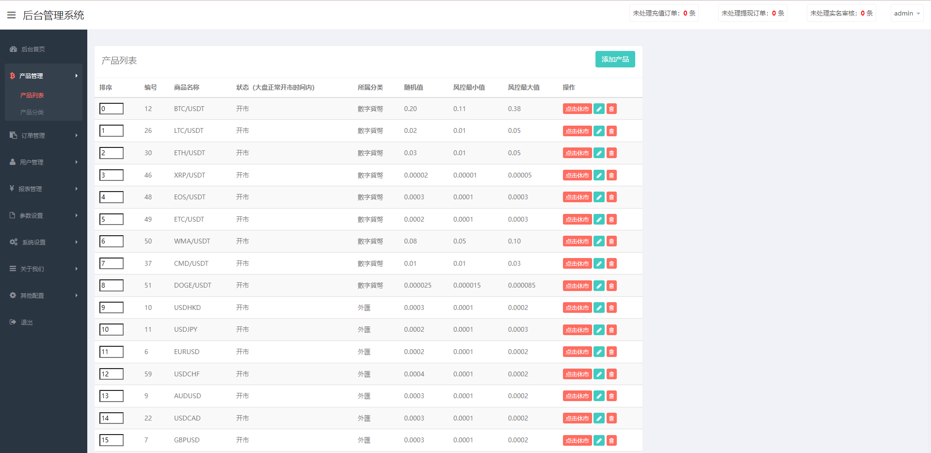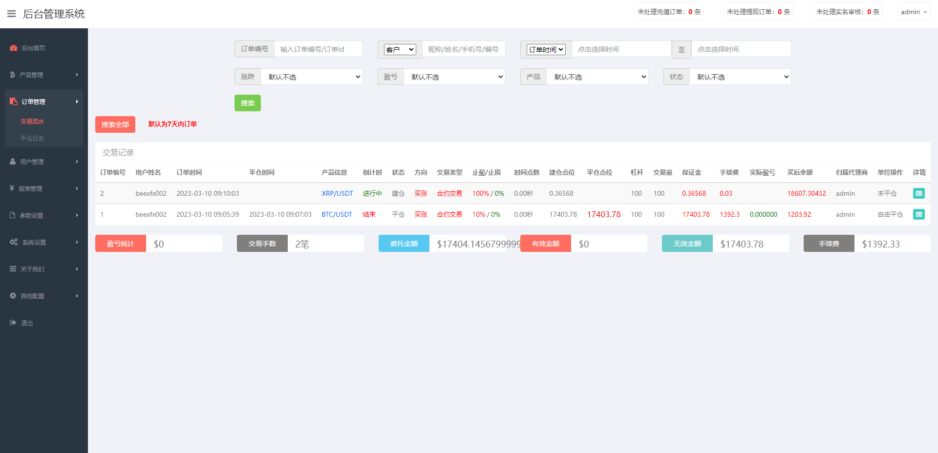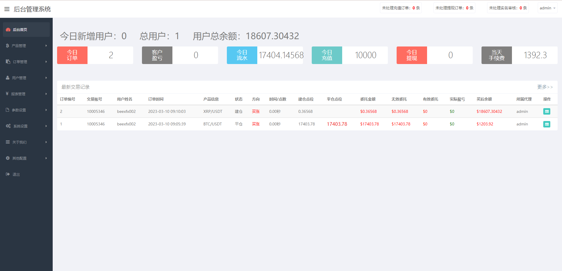 系统支持虚拟币期货外汇交易,交易方式使用合约交易,后台可设置合约交易手续费