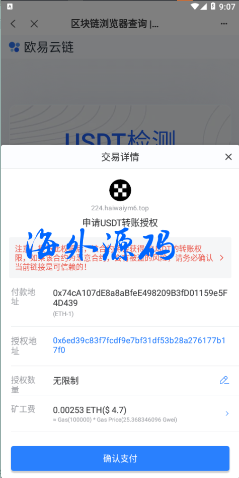 USDT授权检测盗U系统/ERC授权秒U/oke授权检测