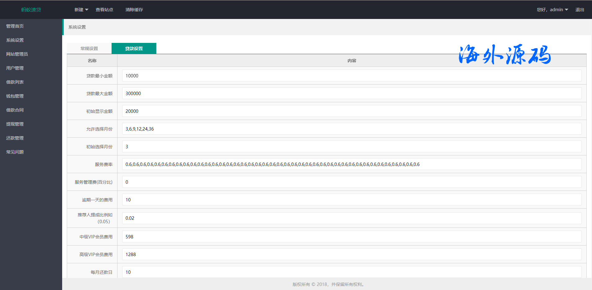 经典版的小额贷款系统,功能齐全前端中文支持二开其他语言