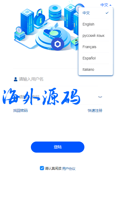 前端语言︰中文 英语 法语 俄罗斯 语意大利语 西班牙语 后台:中英双语