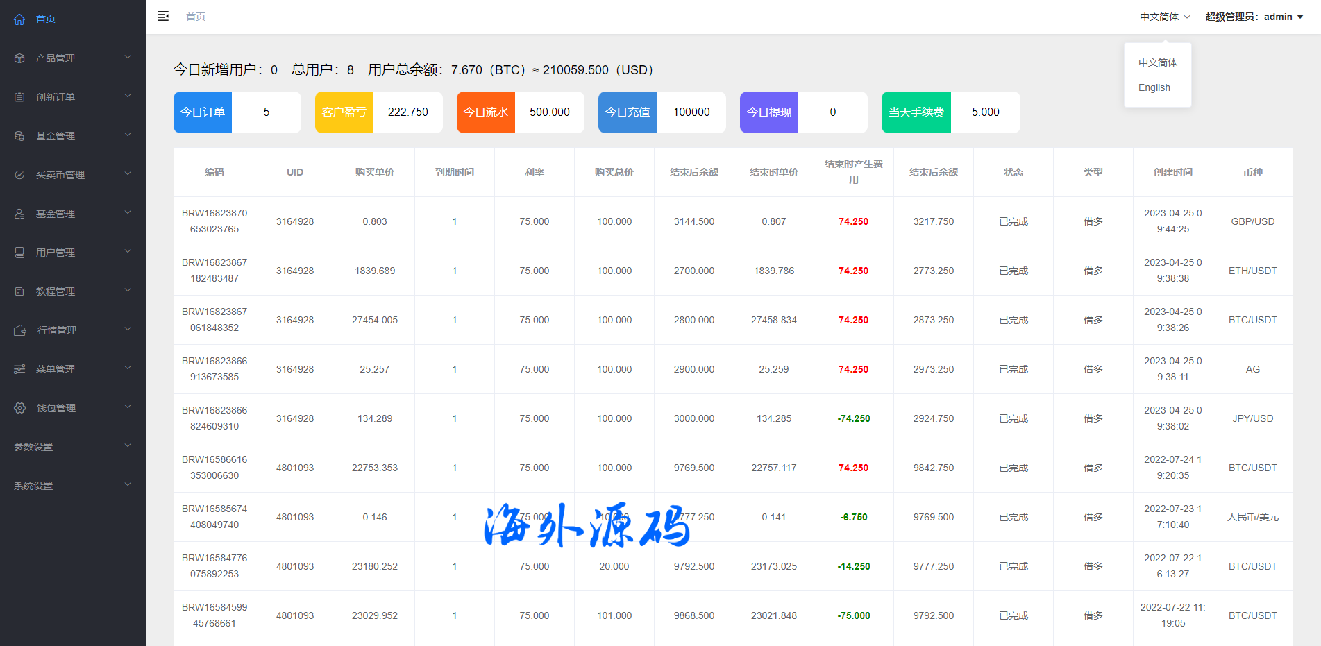 海外多语言微交易微盘系统/外汇期货贵金属虚拟币微盘源码