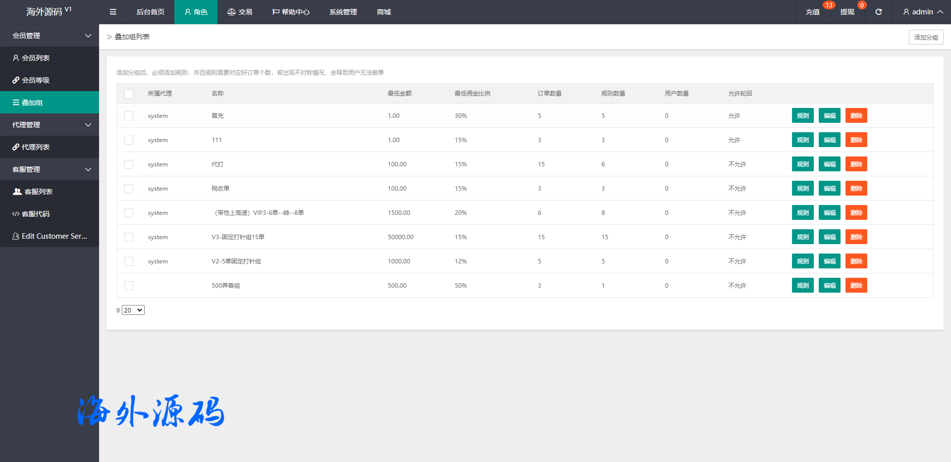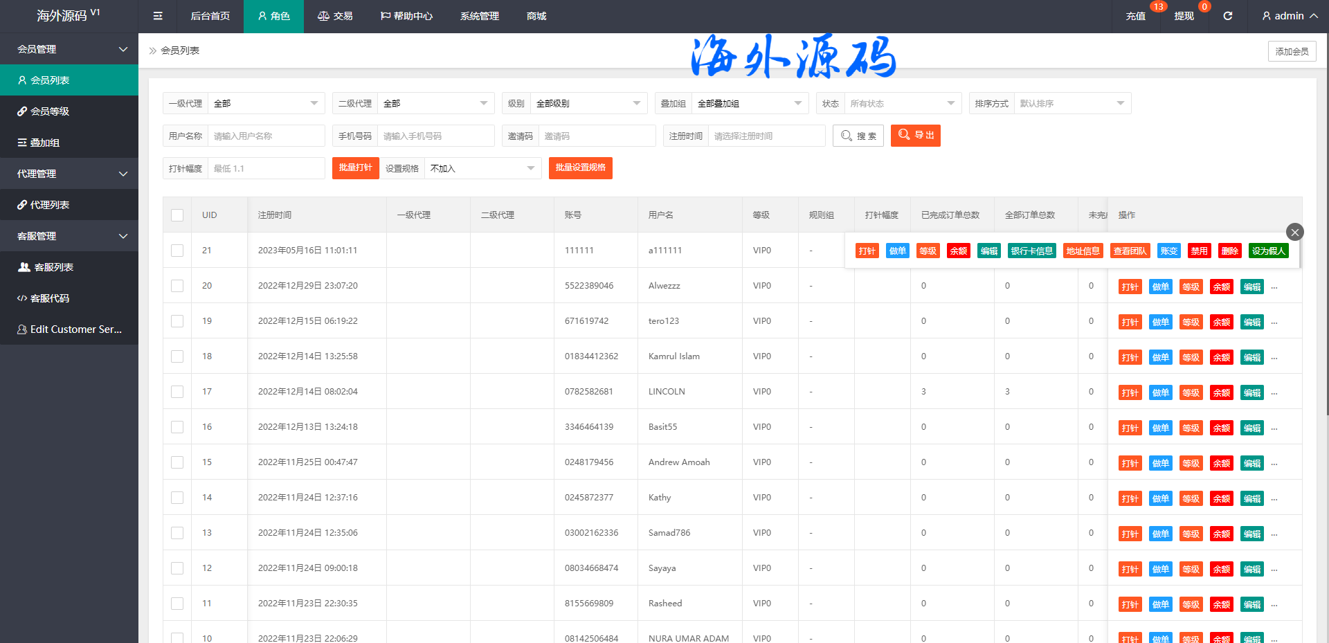 韩国抢单刷单系统/多语言刷单商城/打针/信用分/代理后台