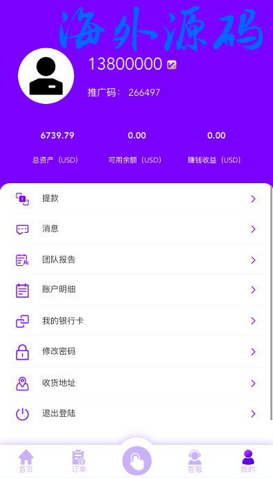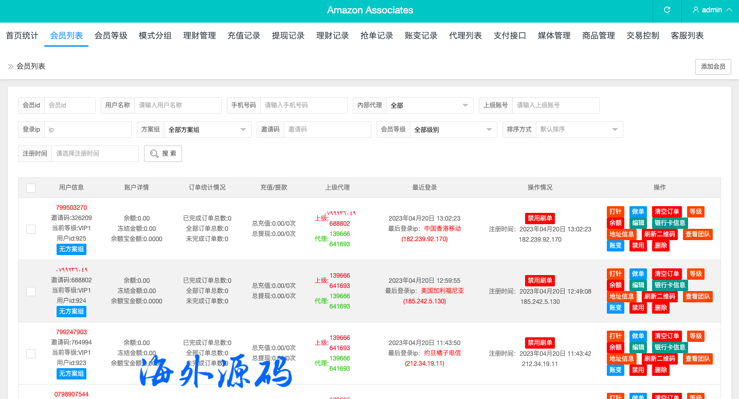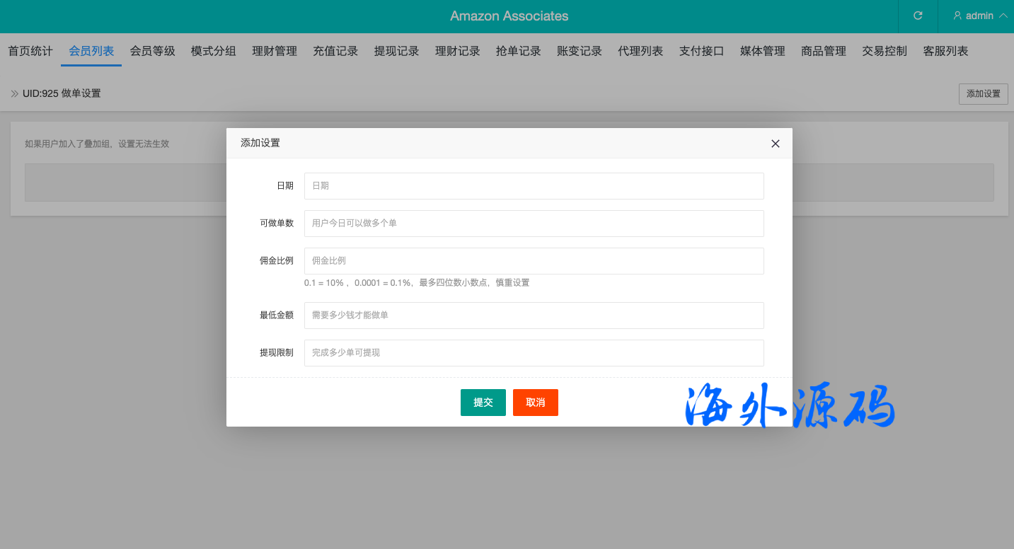 后端thinkphp框架,系统支持叠加组,打针,余额宝等功能。usdt充值,权限代理后台