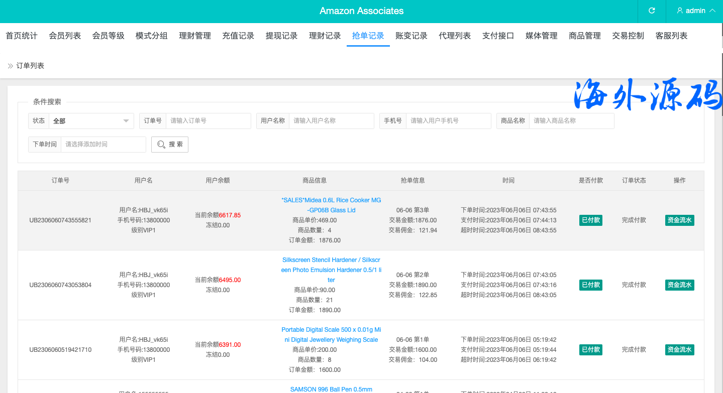 多语言海外抢单刷单源码/打针/叠加组//前端vue/订单自动匹配系统
