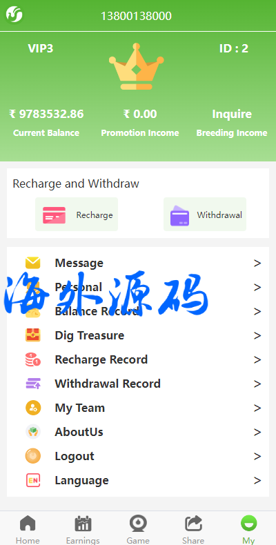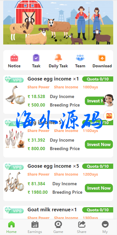 uinapp版海外理财系统/养殖投资理财源码/注册奖励每日任务