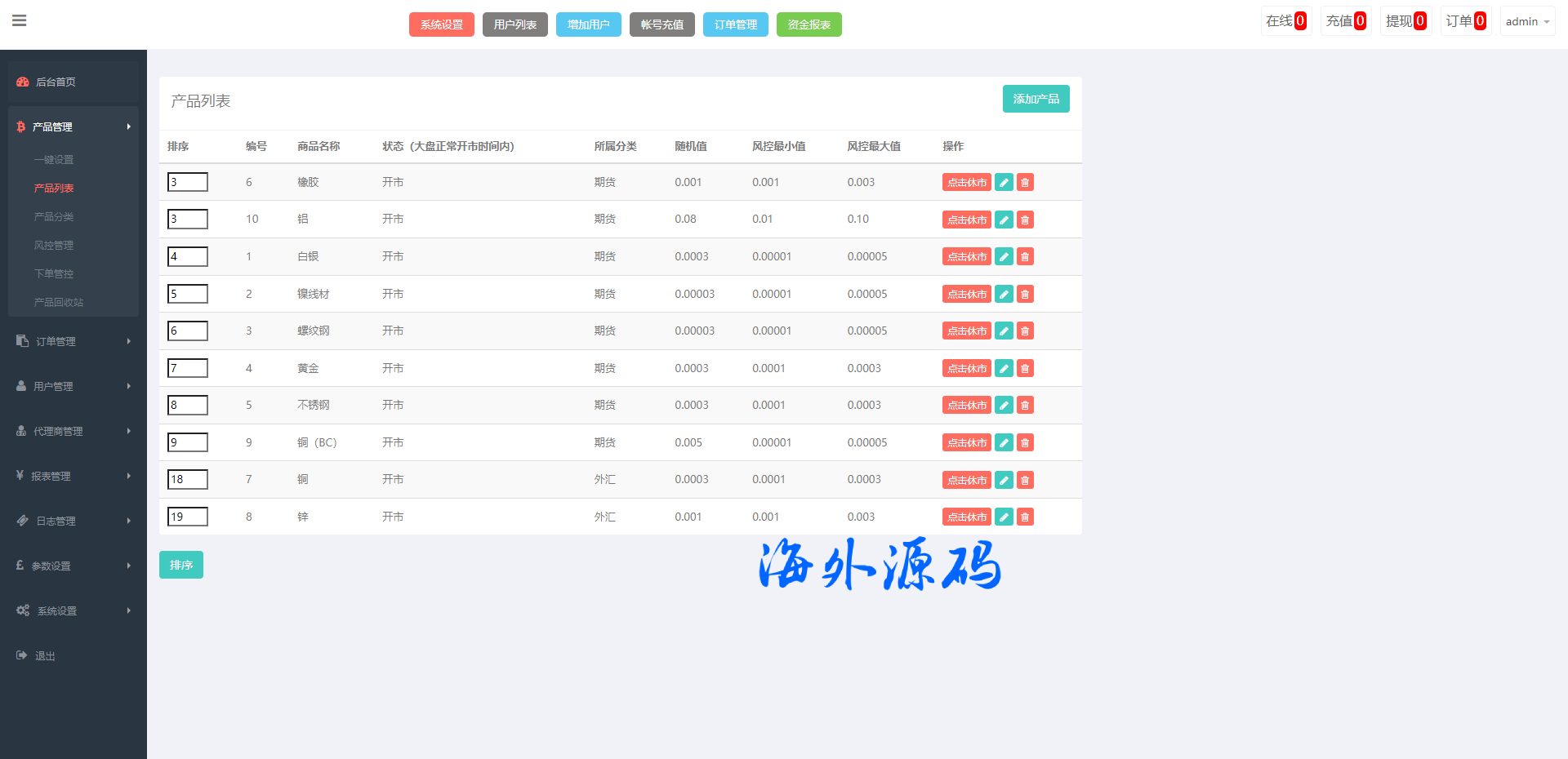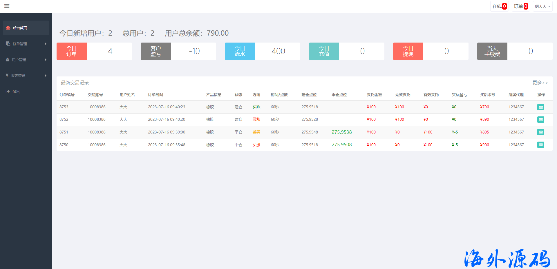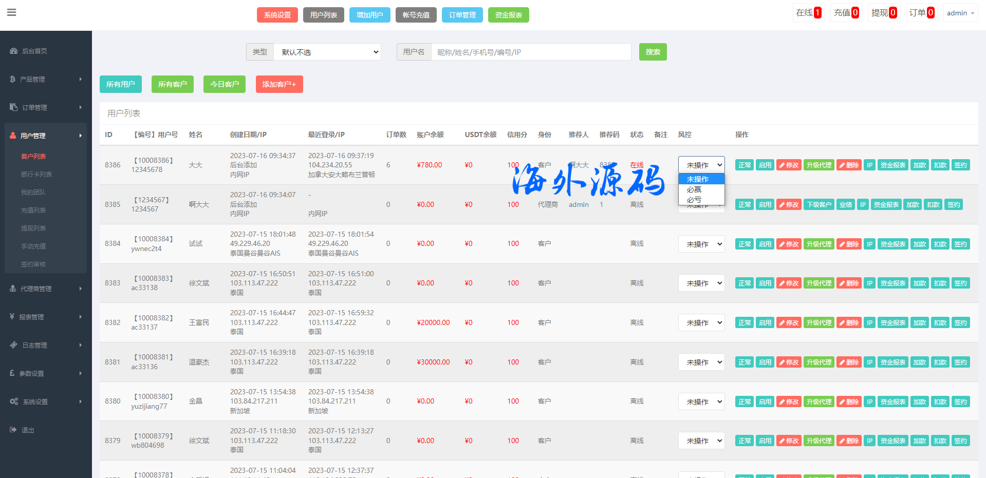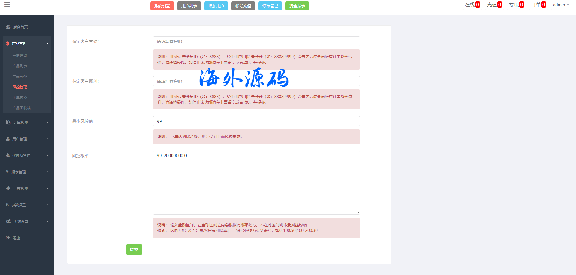 运营版微盘期货交易系统/微交易源码/代理后台/用户风控