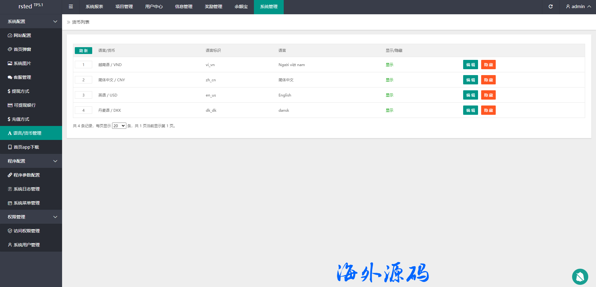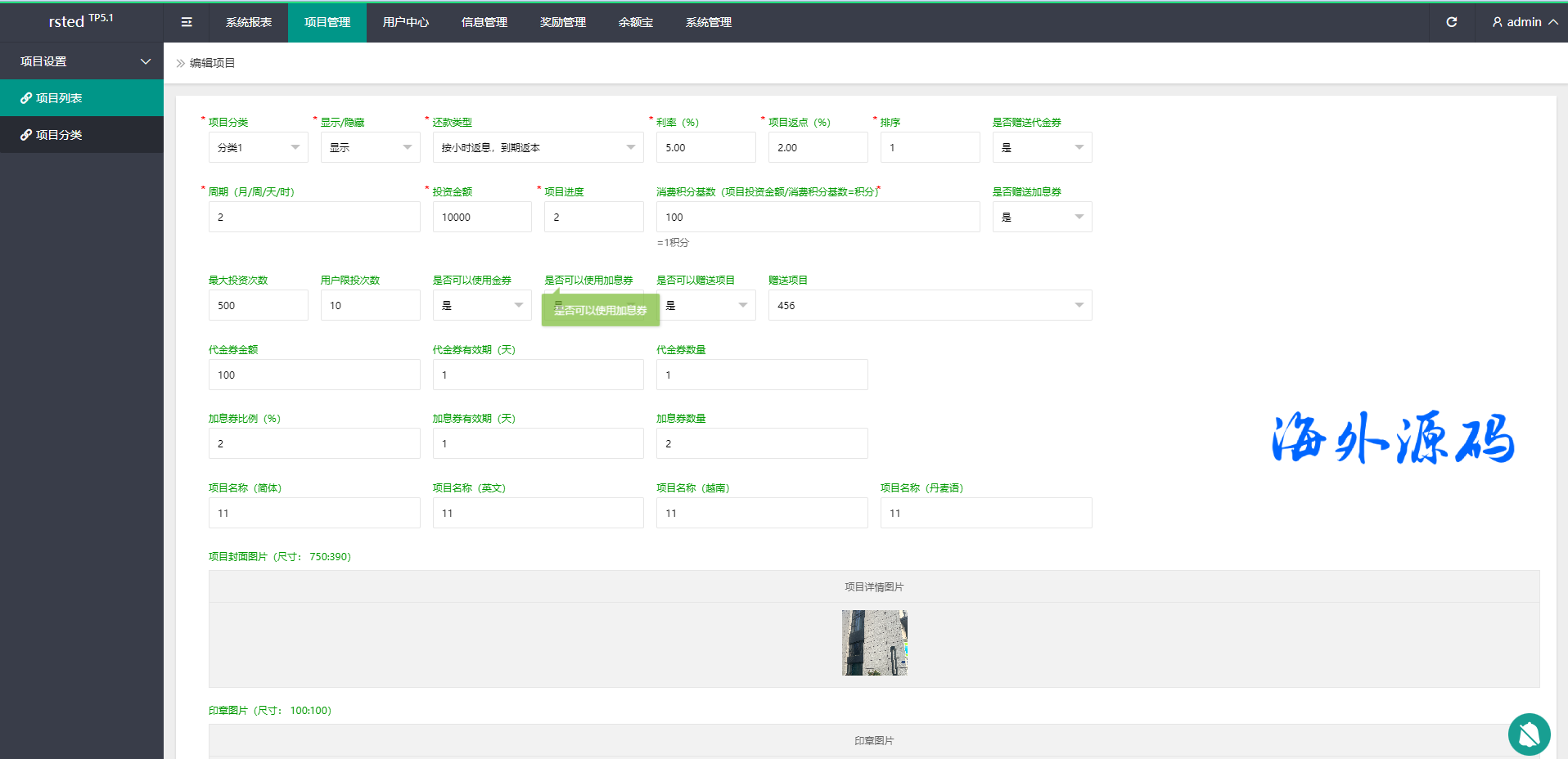 系统功能完善,前端多语言,系统产品后台可修改不限项目类型