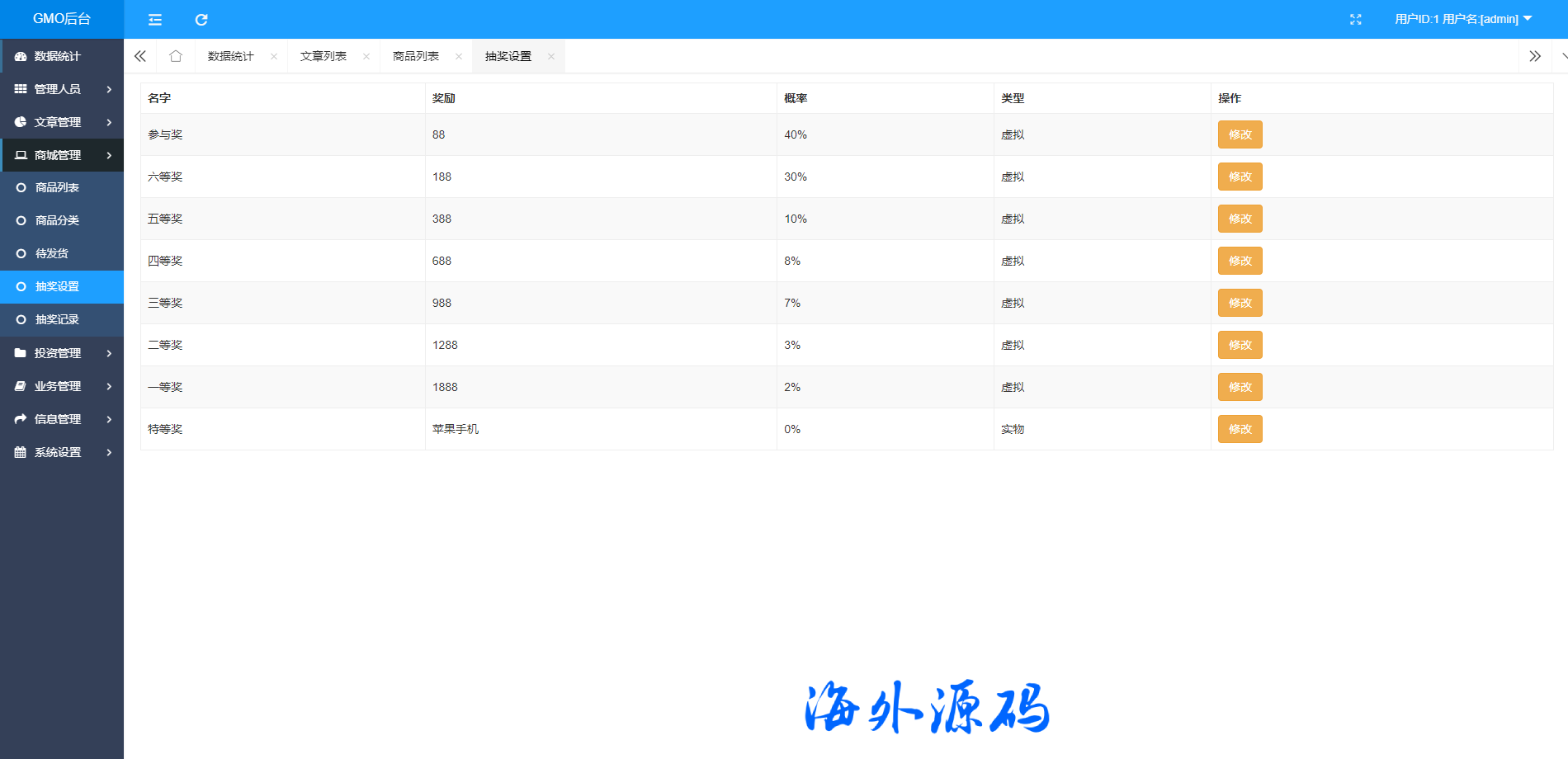 系统功能支持:签到、抽奖、积分商城、余额宝、余额互转等功能