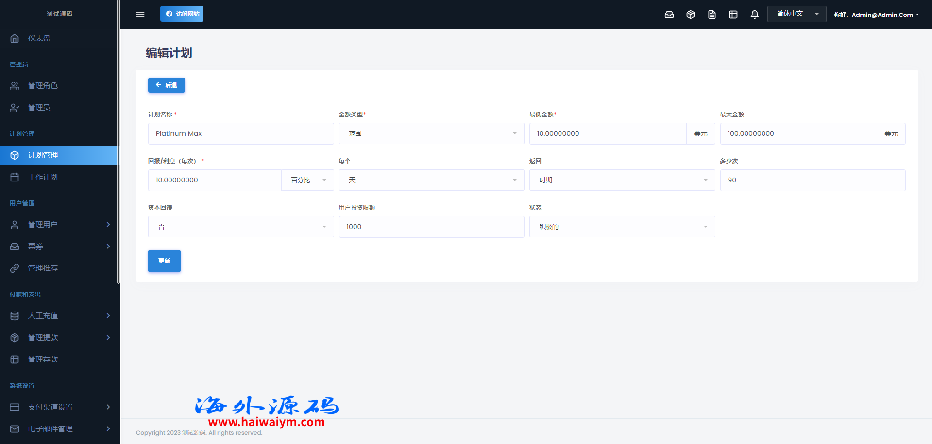 程序特色:极致性能、自适应、搜索引擎优化友好、时事通讯订阅、页面生成器、16+ 支付网关、计划管理、内容管理系统、电子邮件通知、注册奖励、多级推荐系统、电子邮件管理器、日程管理、多语言、存款和支付管理、支持票、信息仪表板、余额转介、2FA认证等多种功能