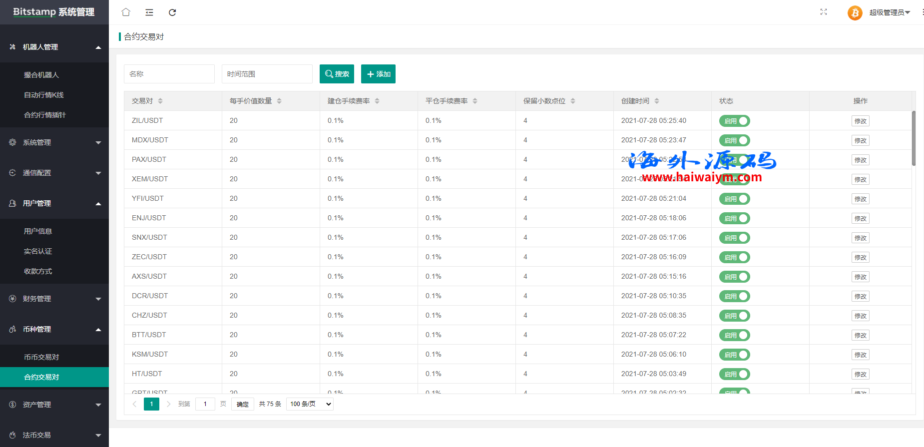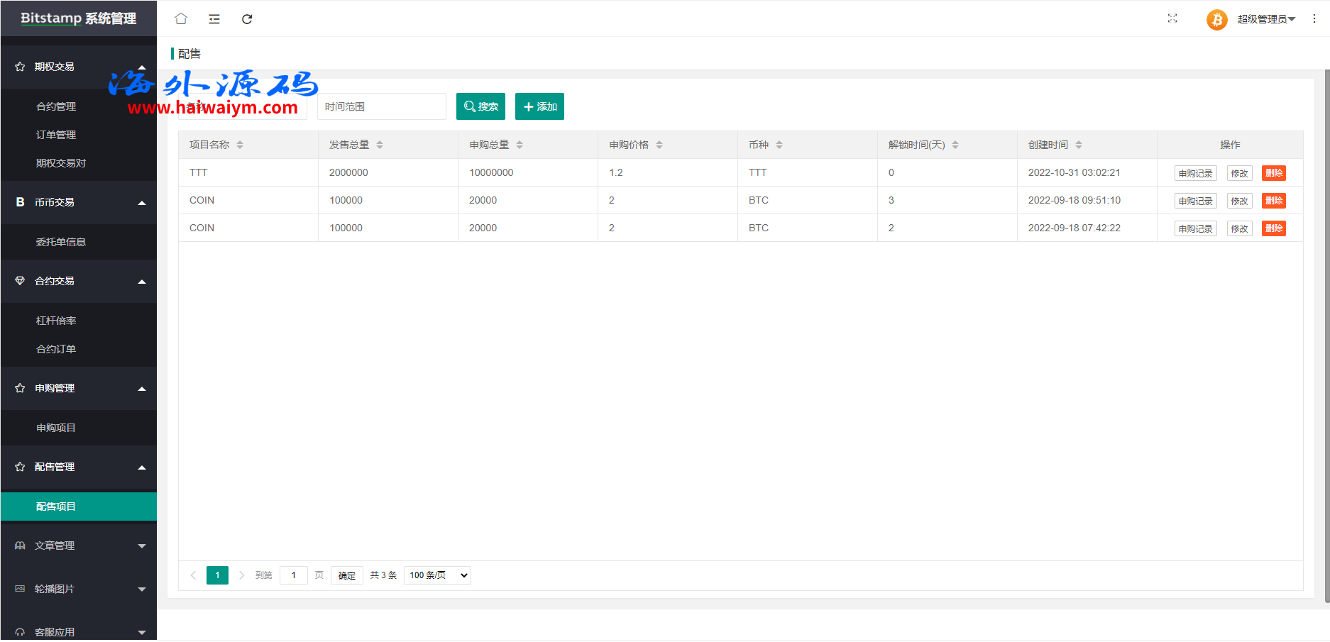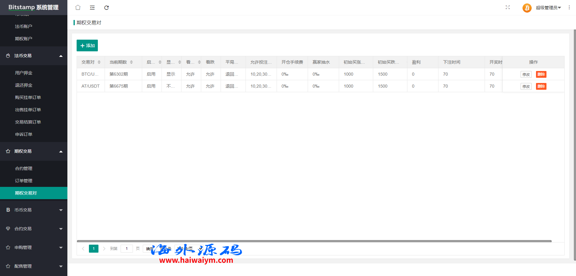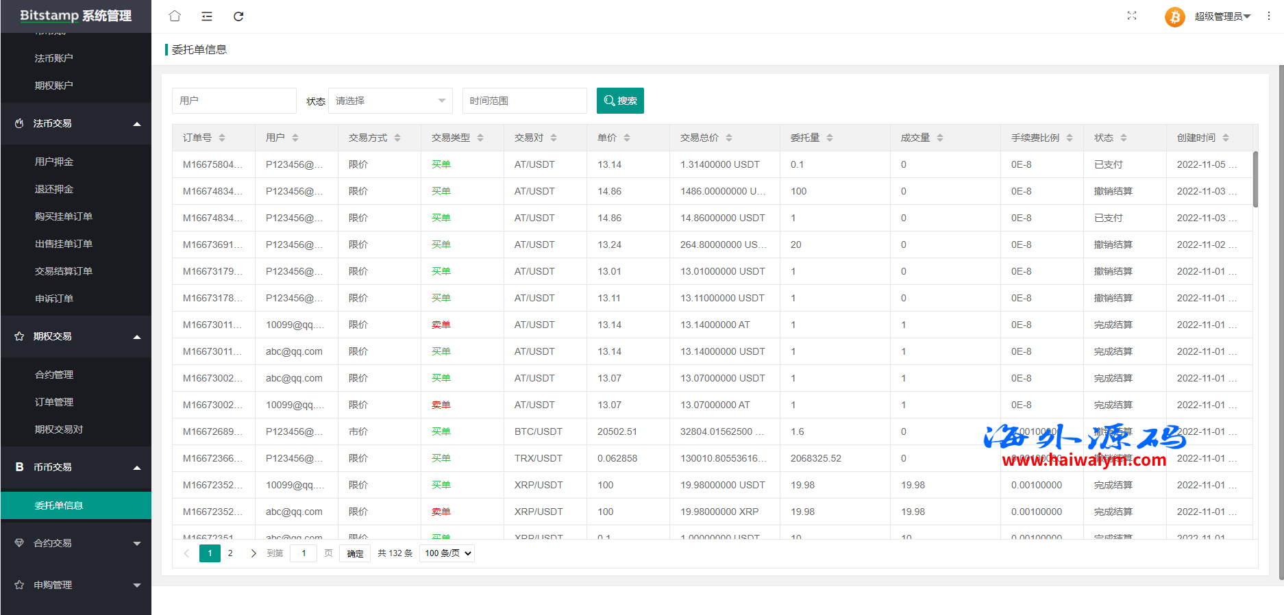 海外交易所系统/合约/期权/质押/秒合约/插针控制/申购