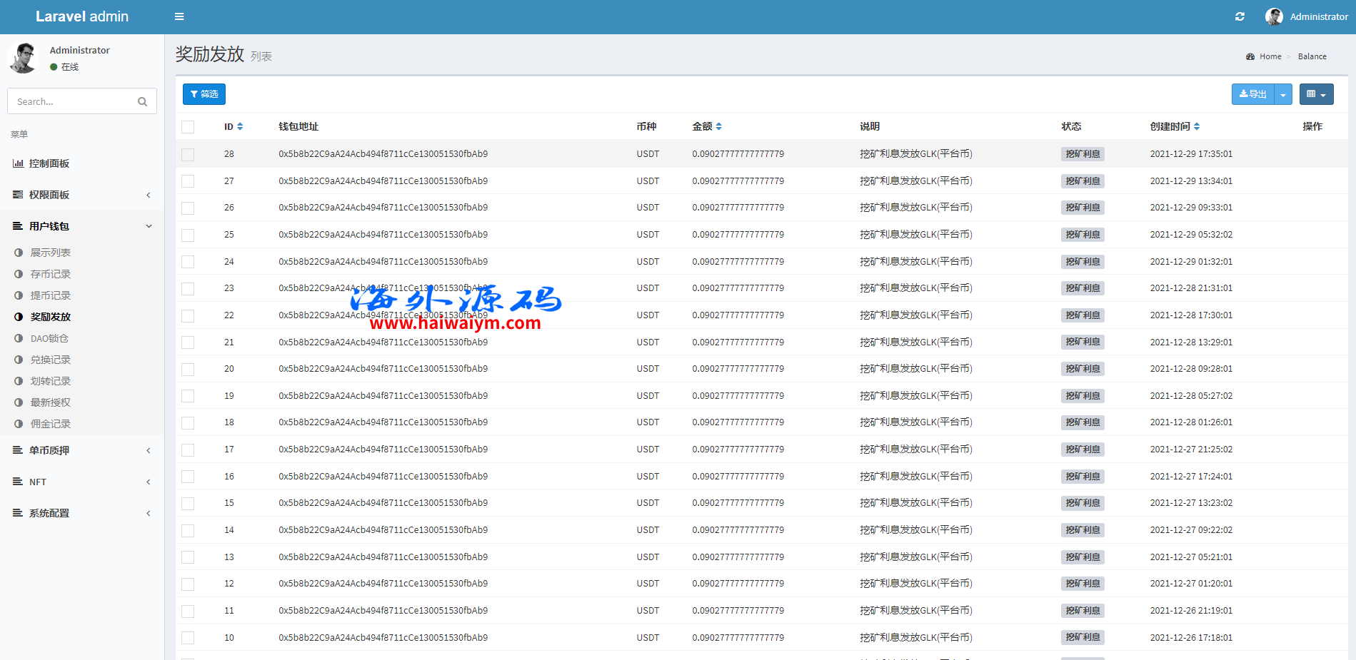 系统是Laravel框架开发的ETH授权质押系统,正常钱包登录,前端中文跟英文