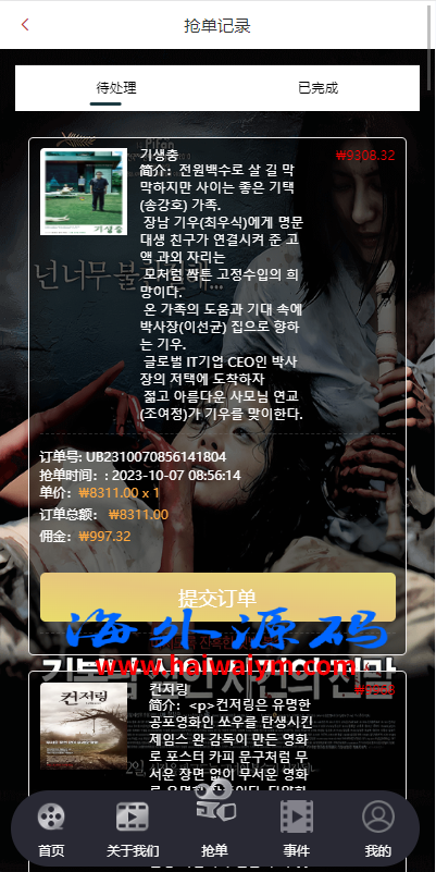 多语言电影抢单刷单系统/影视连单卡单/签到/任务