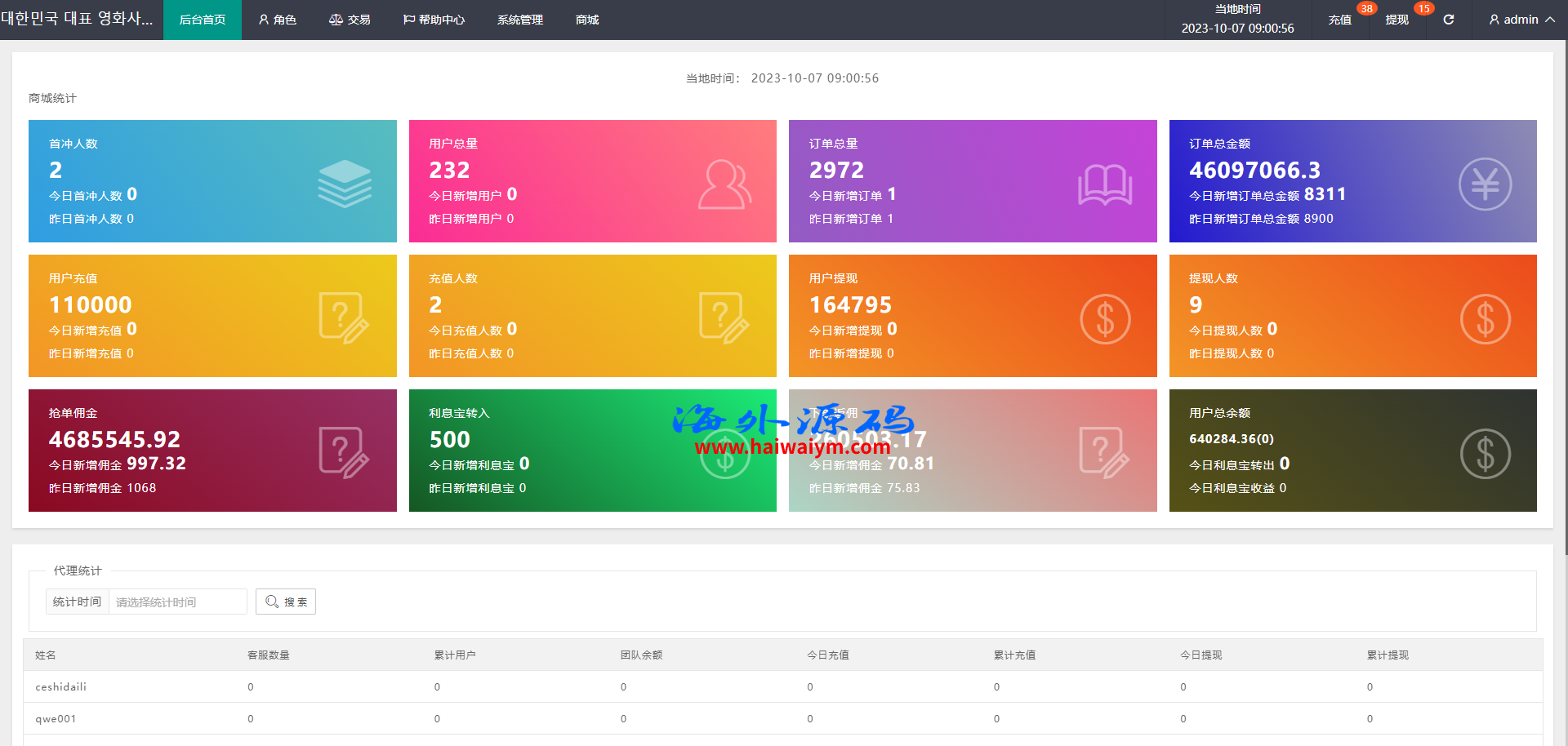 韩国抢单刷单系统/多语言刷单商城/打针/信用分/代理后台
