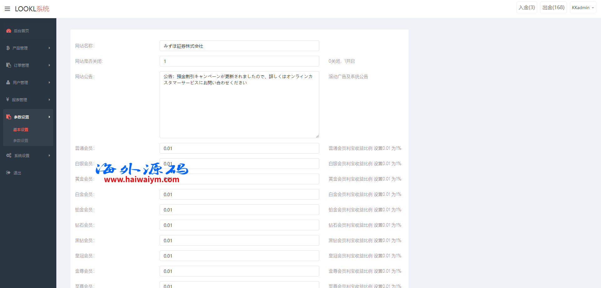 系统刚运营下来主打的日本,新增邀请注册、注册送礼等功能