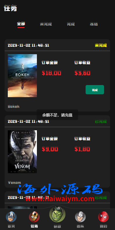 海外多语言漫威电影刷单系统,系统带单独代理后台