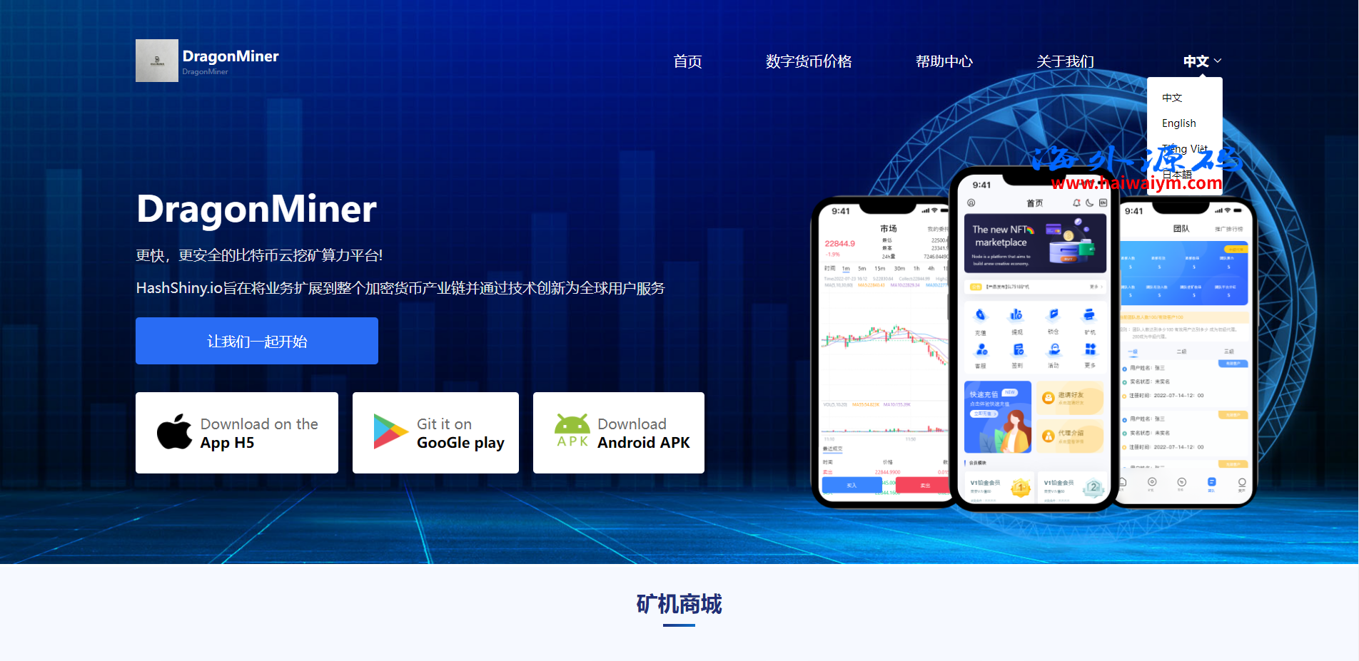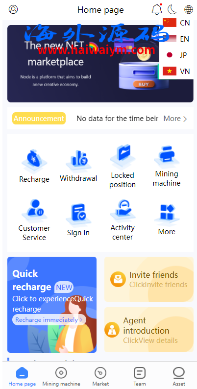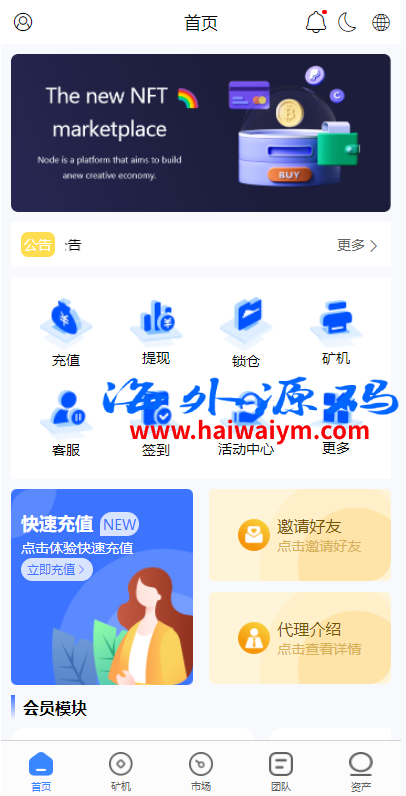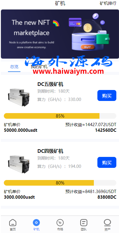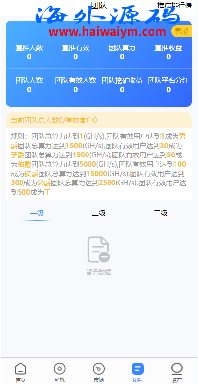 多语言海外矿机系统/质押锁仓/市场交易/全球分红/三级分销