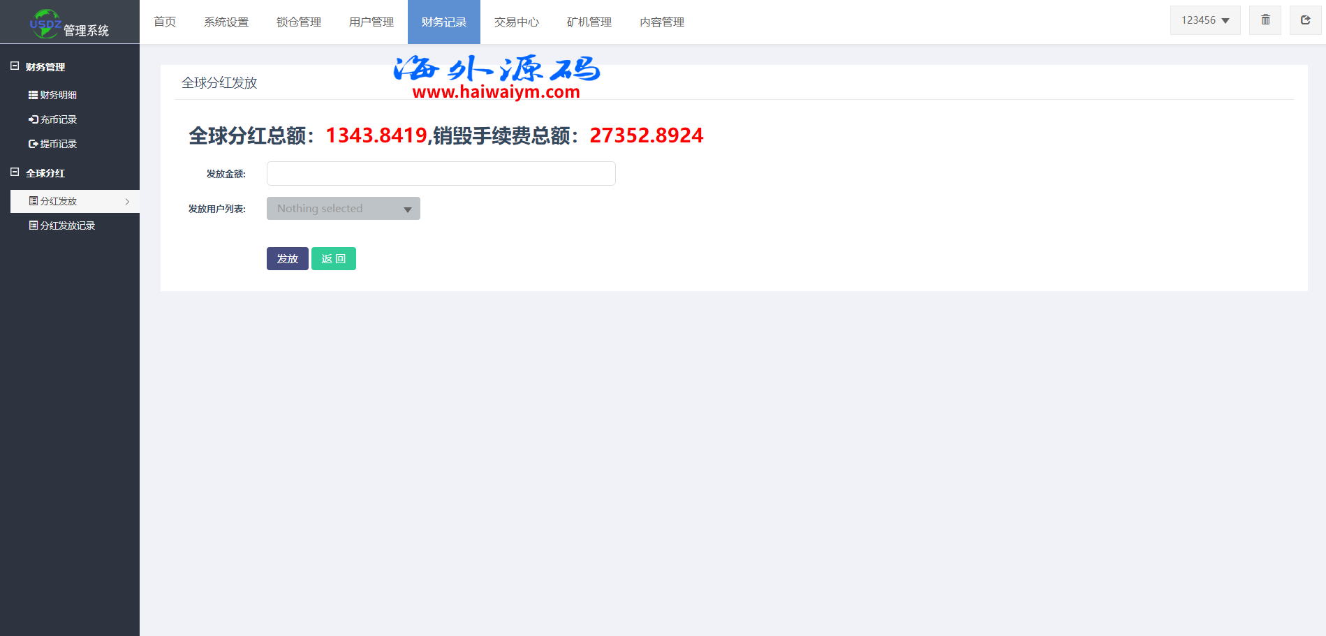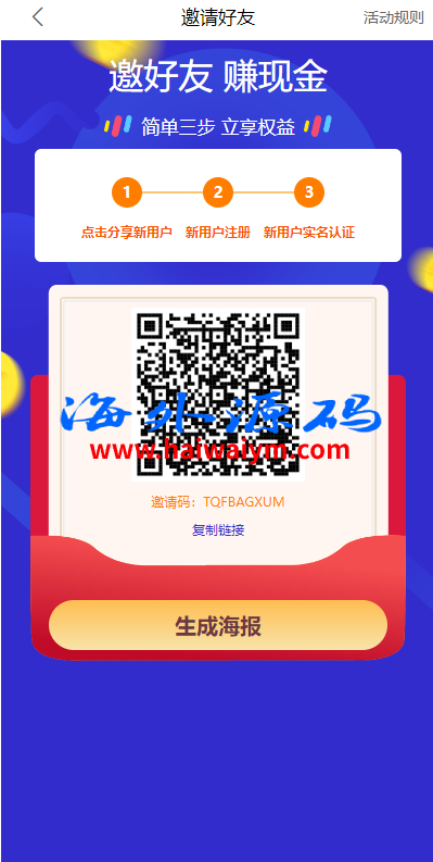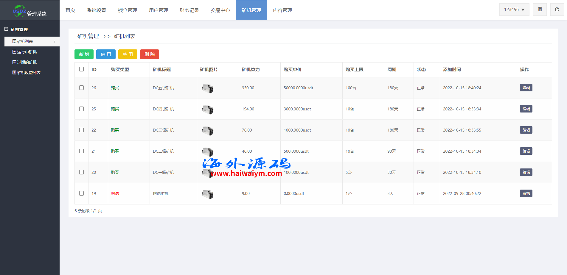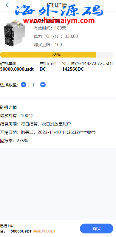 系统是定制版的矿机投资系统,功能有:购买矿机、活期锁仓、平台币市场交易、三级分销、签到、全球分红等多个功能