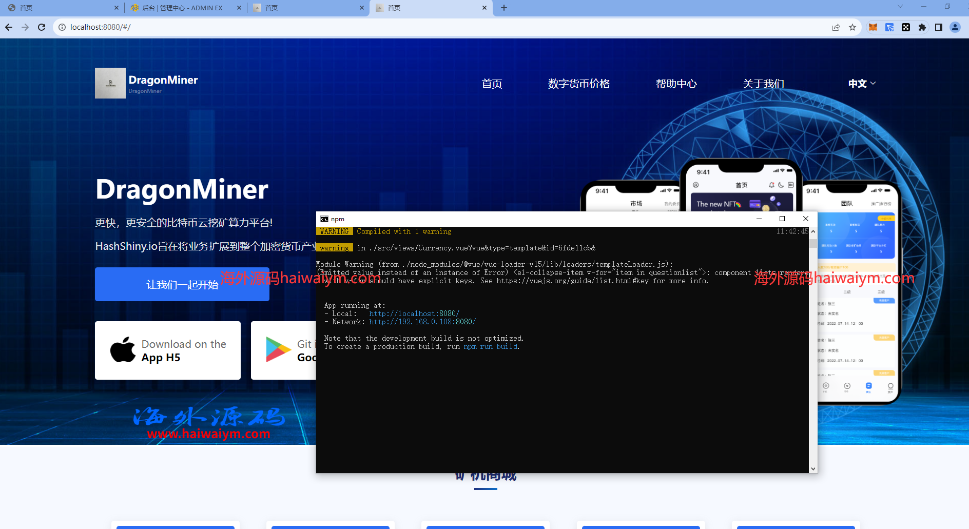 源码全开源的带完整教程,pc端是vue开发,手机端是uinapp开发带源码