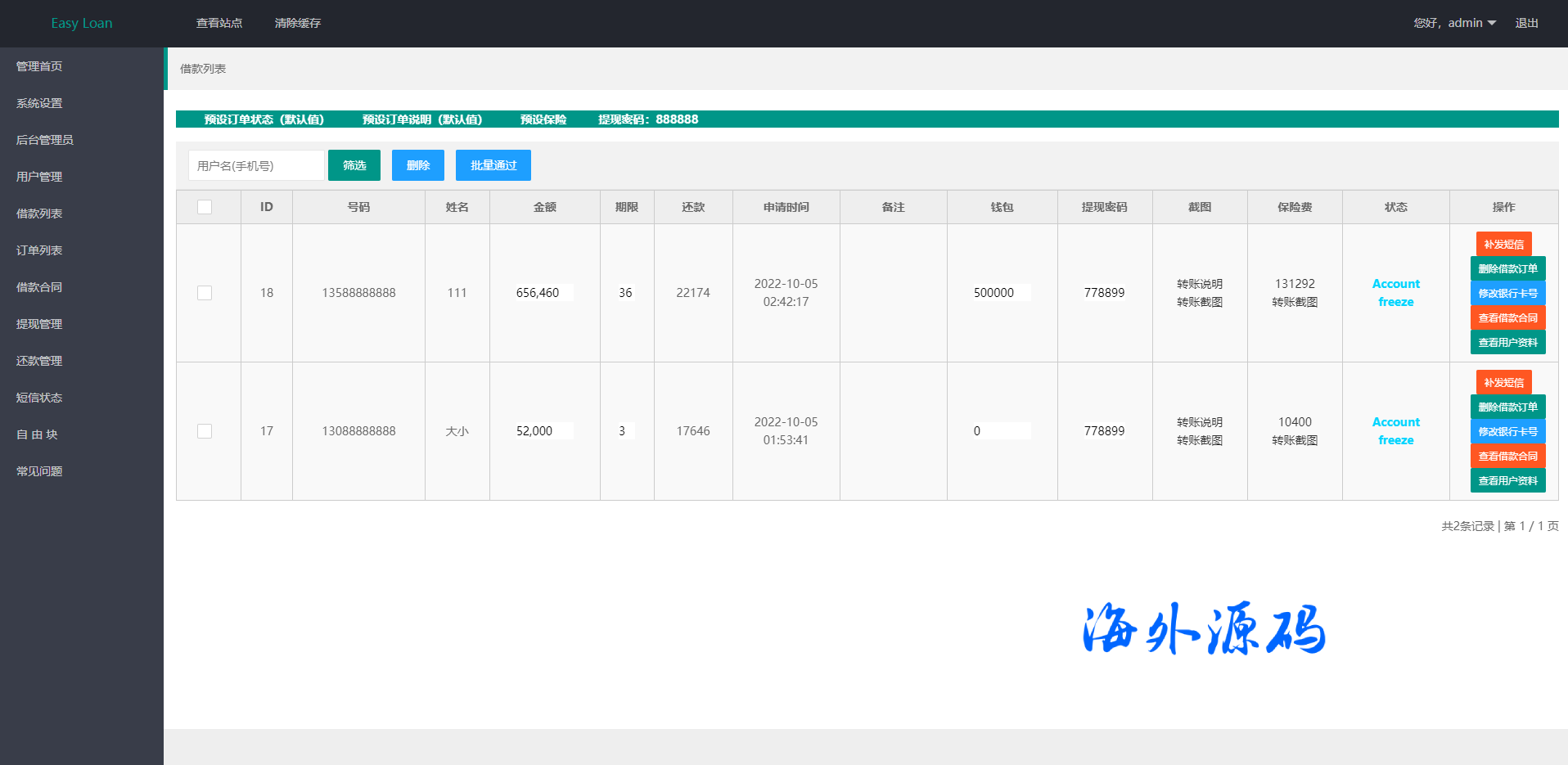 全新优化版中英小额贷款源码/海外贷款系统/网贷源码