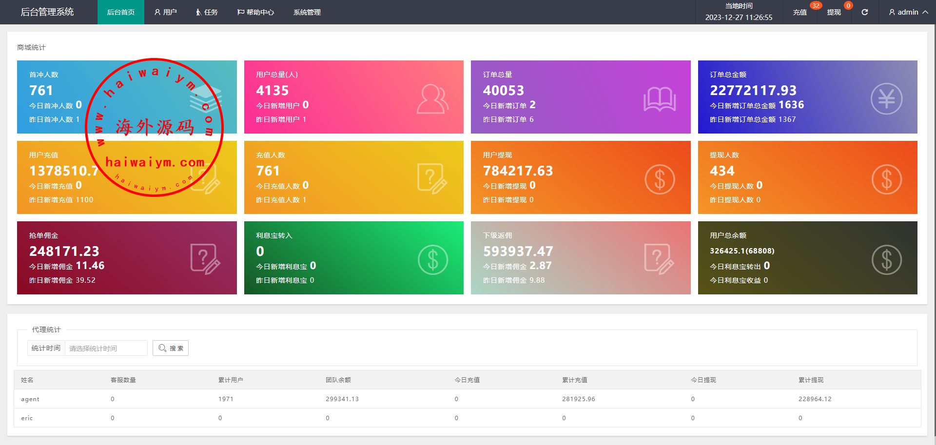 韩国抢单刷单系统/多语言刷单商城/打针/信用分/代理后台