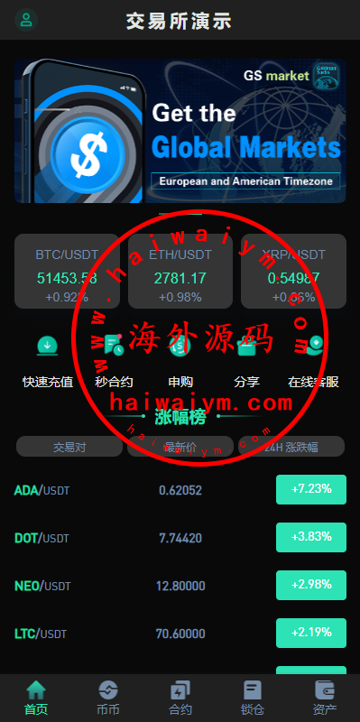 新UI多语言海外交易所/永续合约/秒合约/锁仓挖矿/前端uniapp