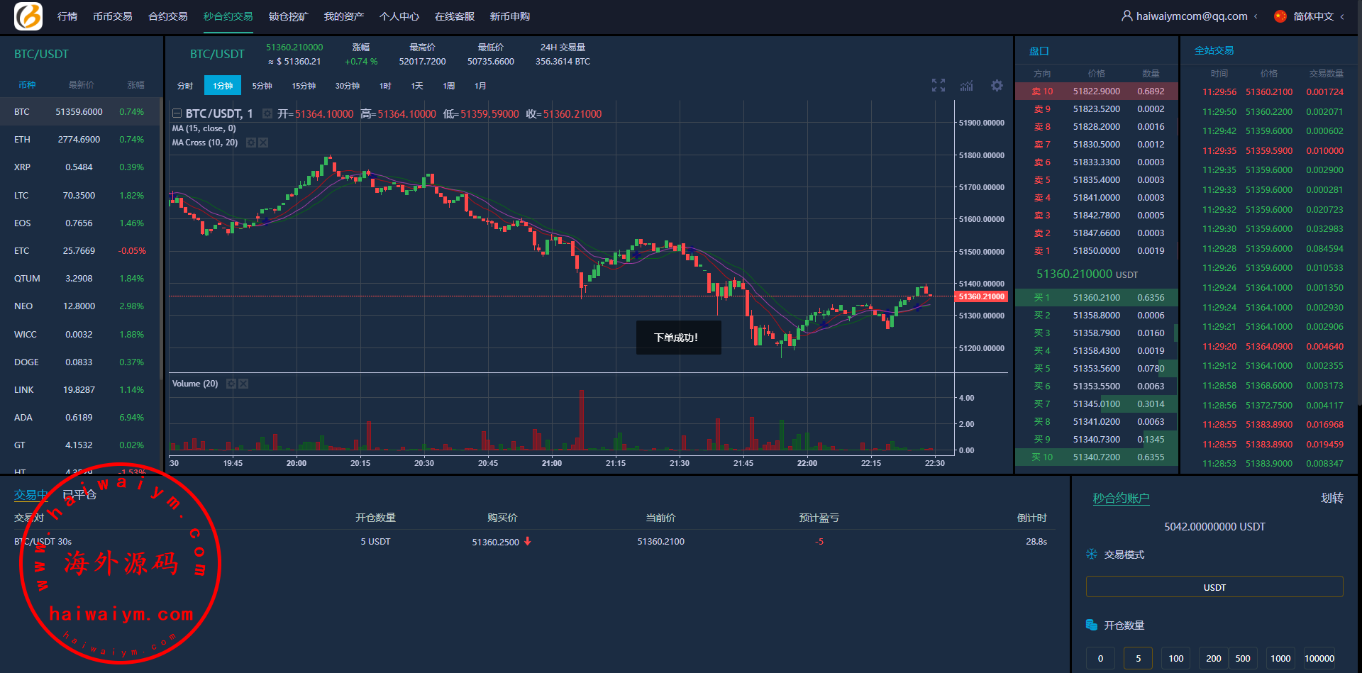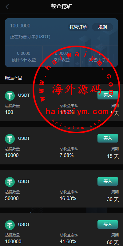 系统功能支持:秒合约、合约、锁仓挖矿、新币认购功能,无平台币