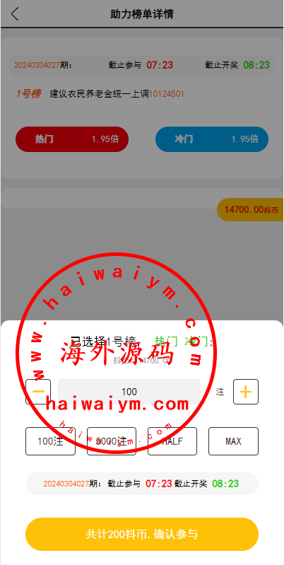 运营版抖音热门竞猜系统/竞猜下注/开奖预设/热门数据竞猜