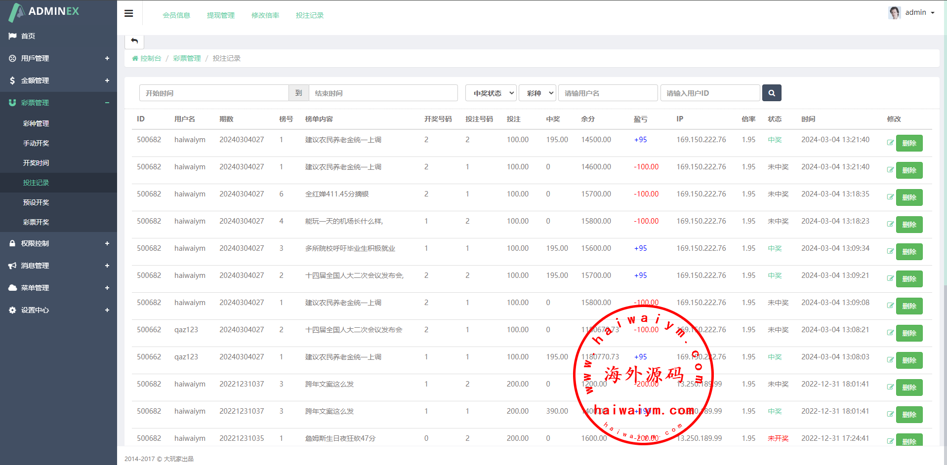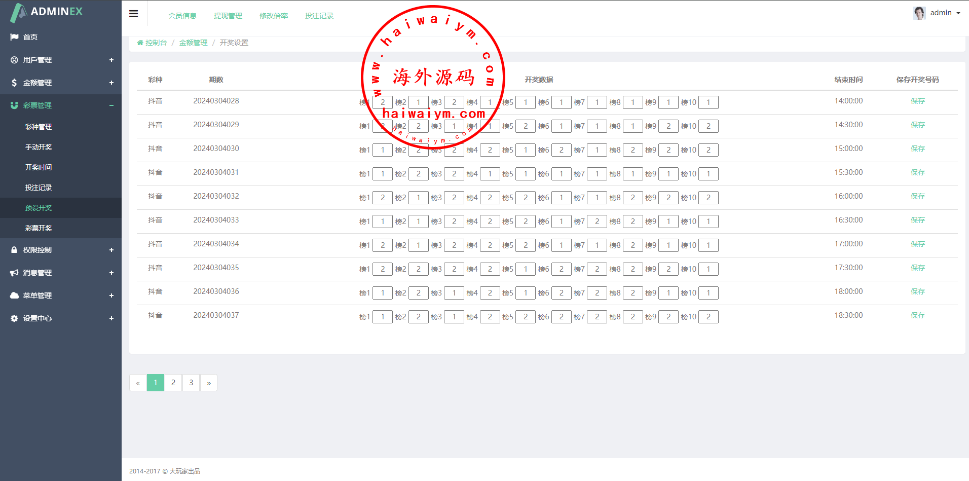 带完整安装教程说明,前台投注到时间需要后台手动开奖,带预设开奖