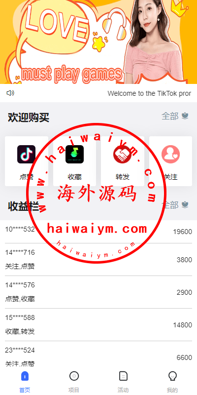 系统全新开发海外Tiktok点赞下注系统,前端带多国语言
