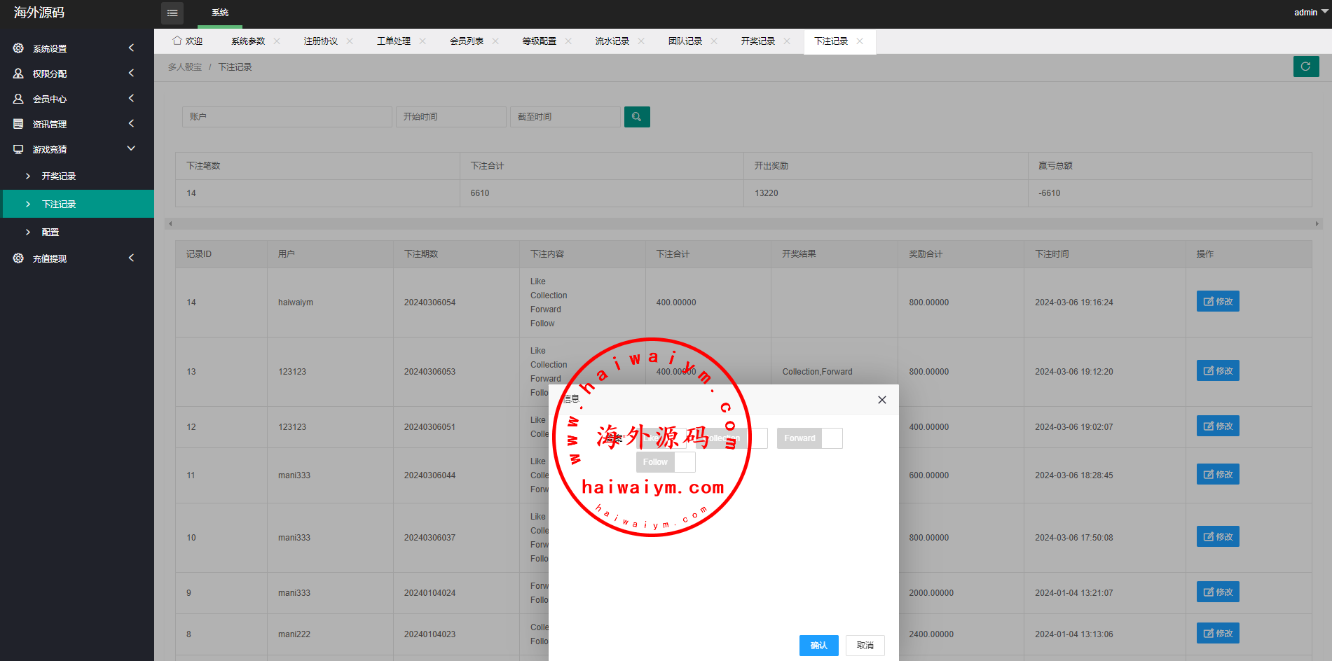 多语言伪商城系统/海外Tiktok点赞下注/竞猜下注/开奖预设