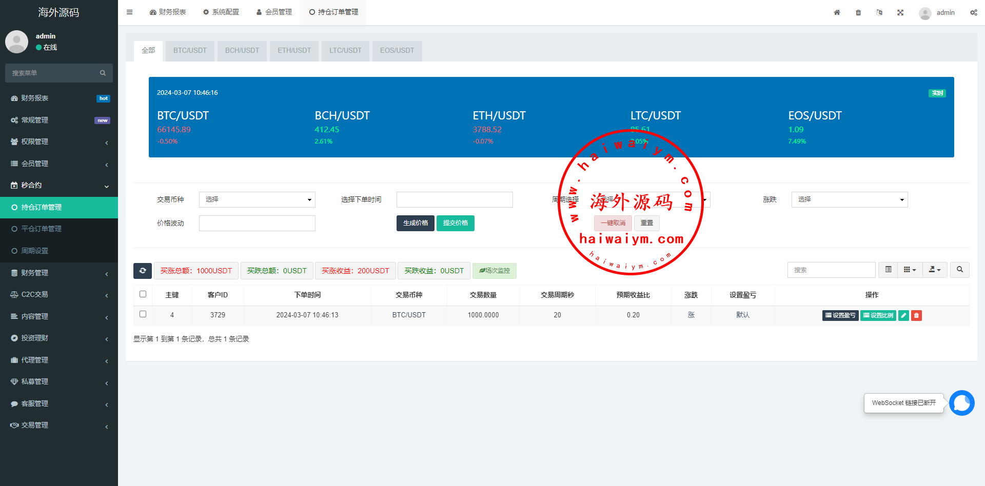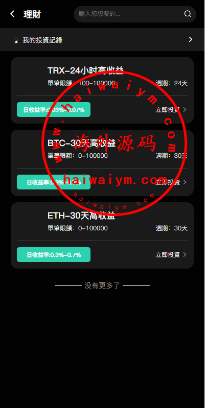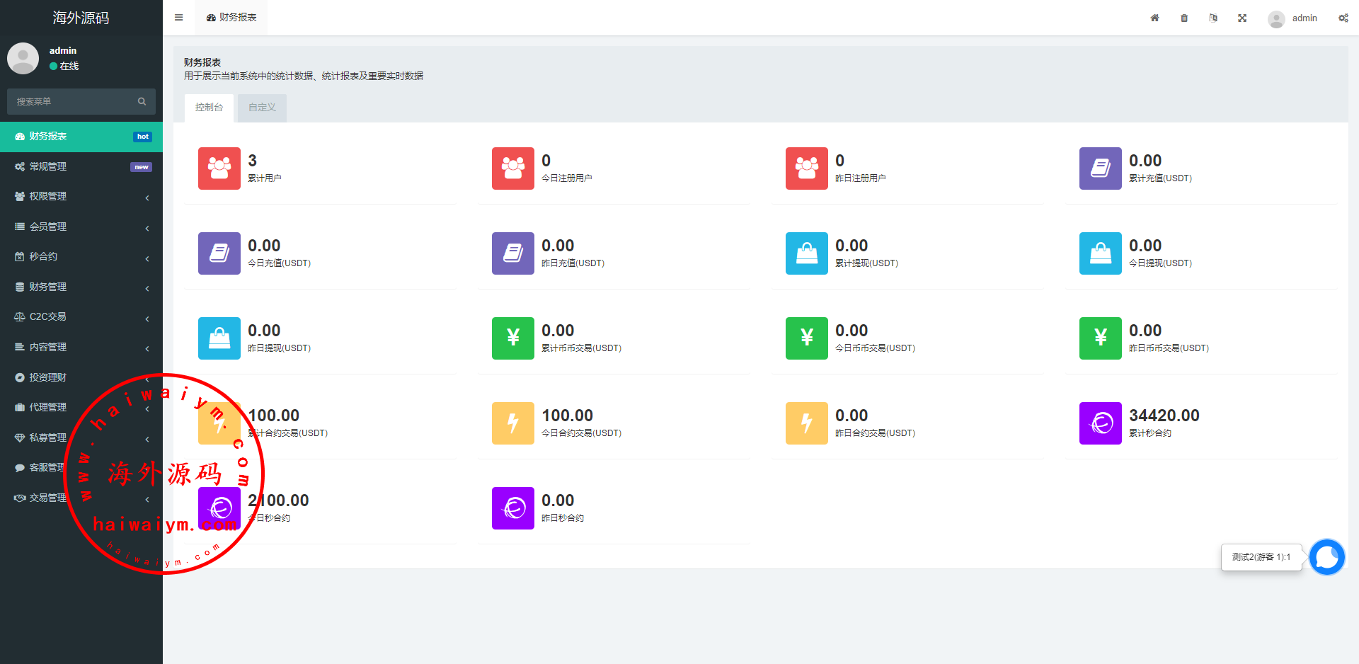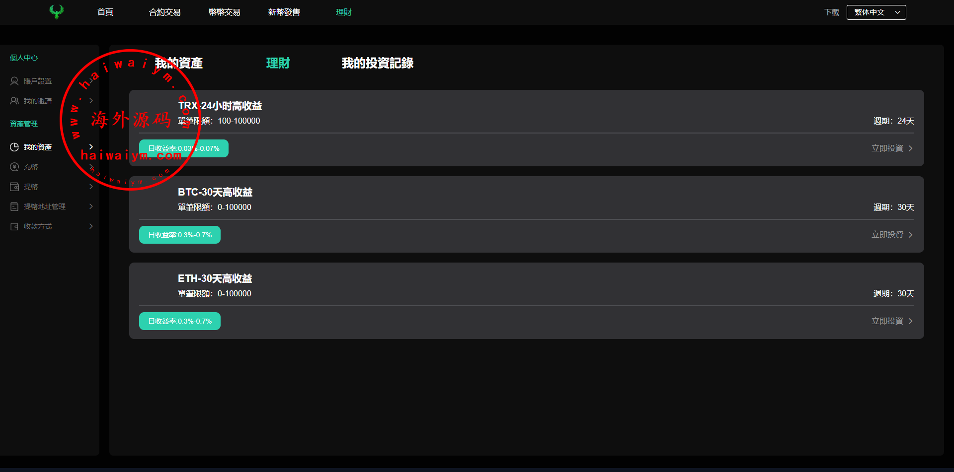 系统功能很全了,ui也不错功能支持:币币交易、合约交易、秒合约交易、c2c、认购、理财等