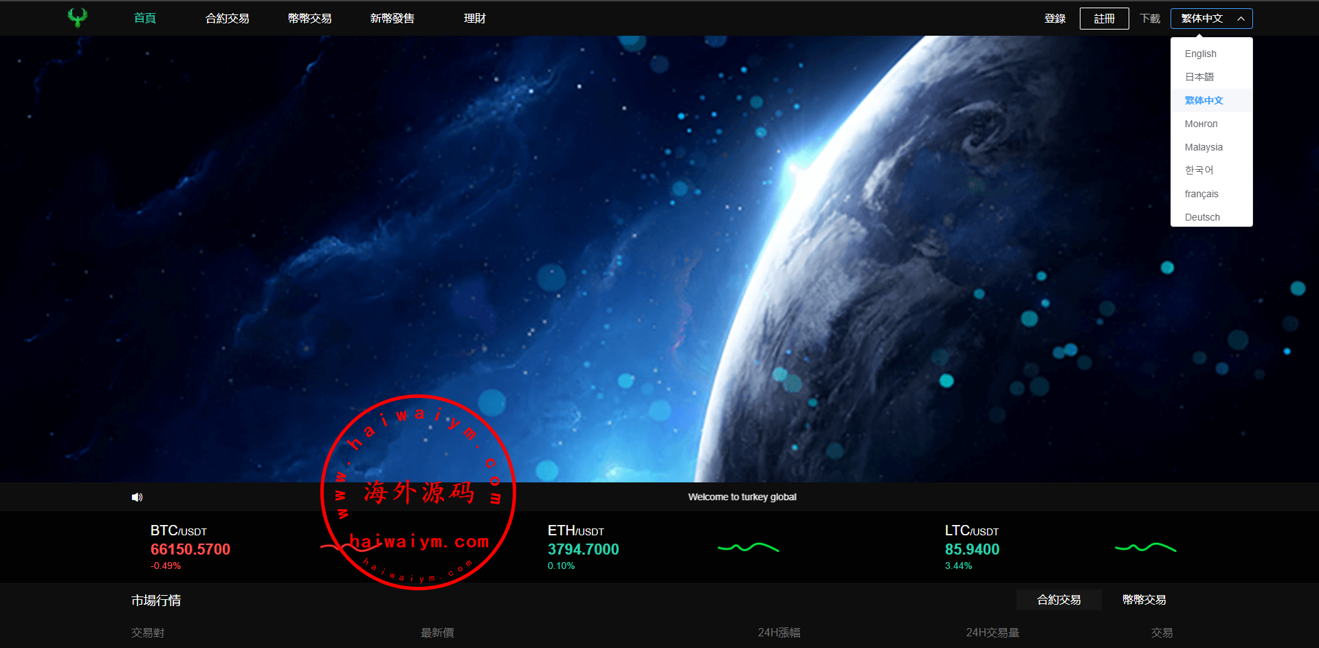 新版多语言交易所系统,手机pc端均为uinapp开发,后端PHP的FastAdmin框架