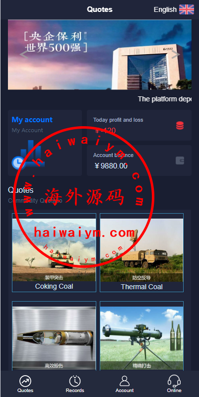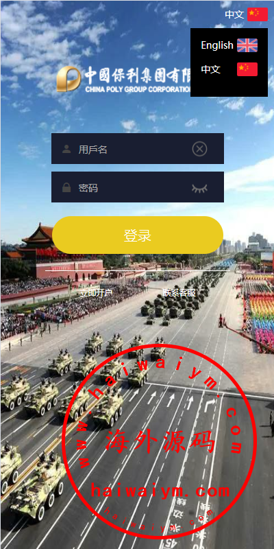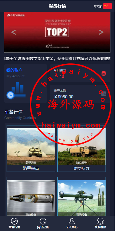 前端UI二开军工产品交易,新增双语言,首页防封验证此套有单独代理后台,后台可新增代理商