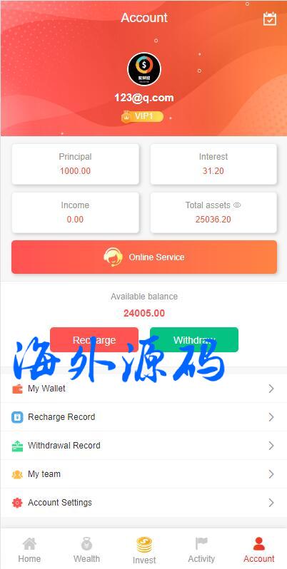 vue前端虚拟币投资系统/海外多语言基金虚拟币投资返利源码