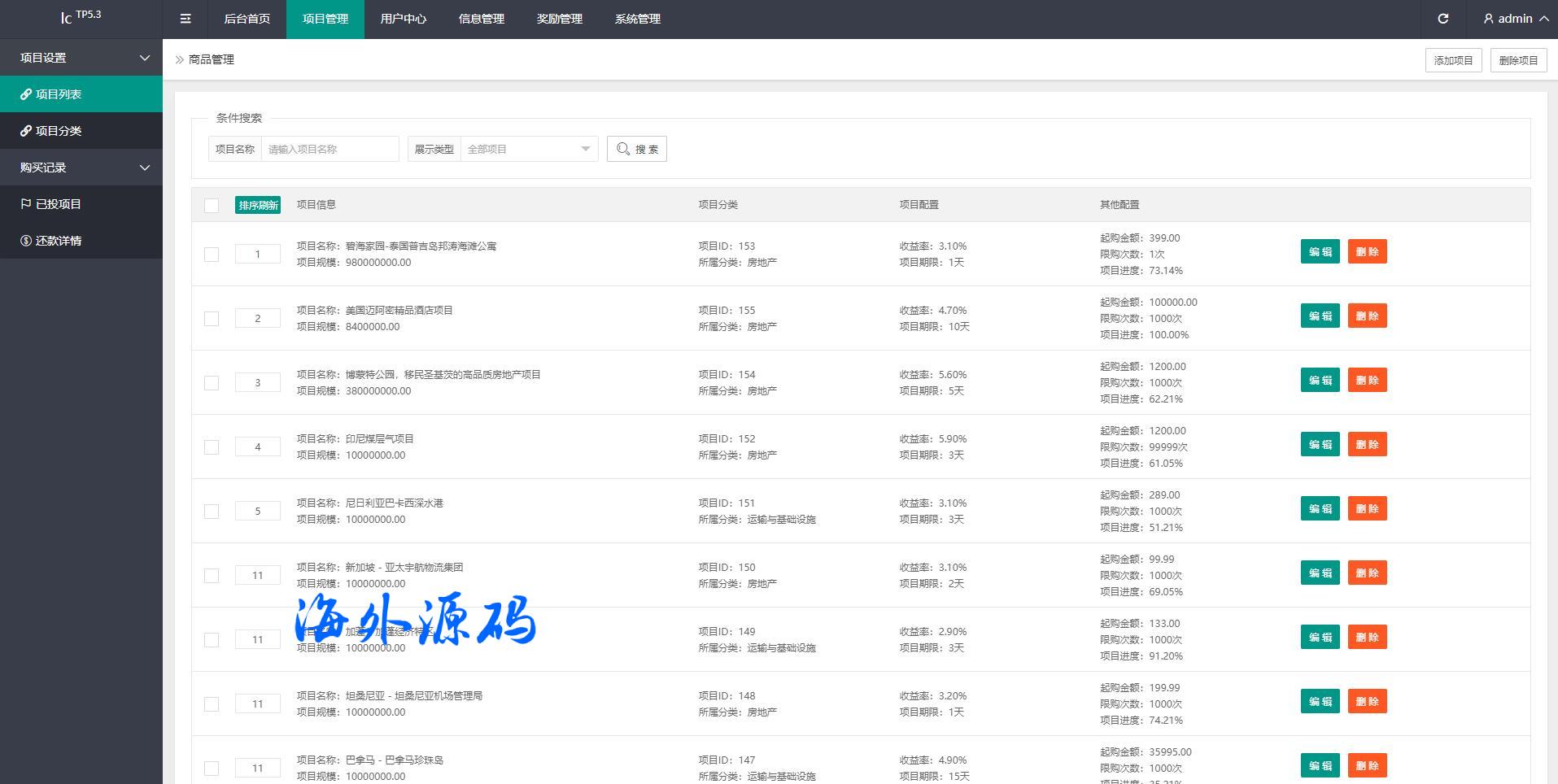 多语言项目投资平台,不限项目类型,后台任意更改投资项目,源码附带完整教程,前端VUE源码