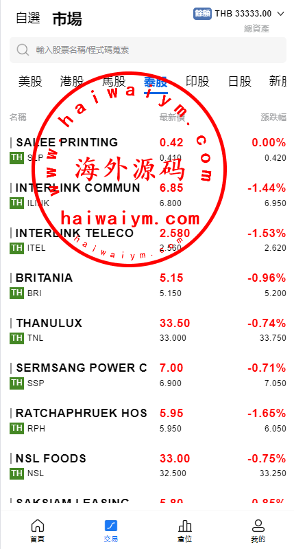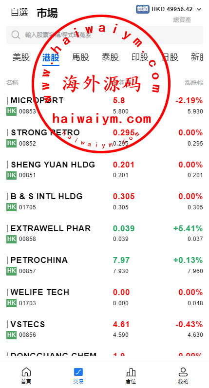 自带股票:美股、港股、马来股、泰股、印度股、日股