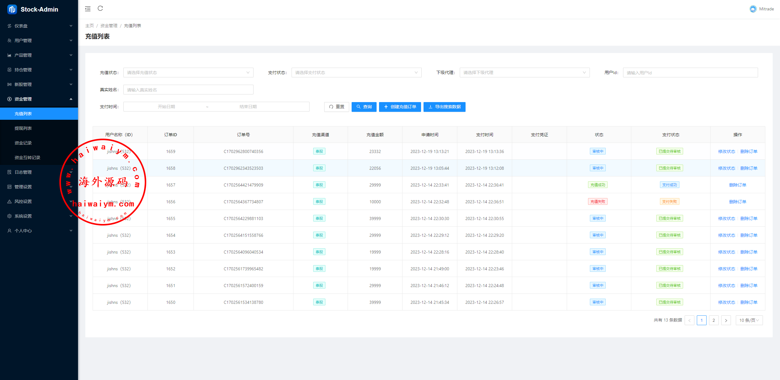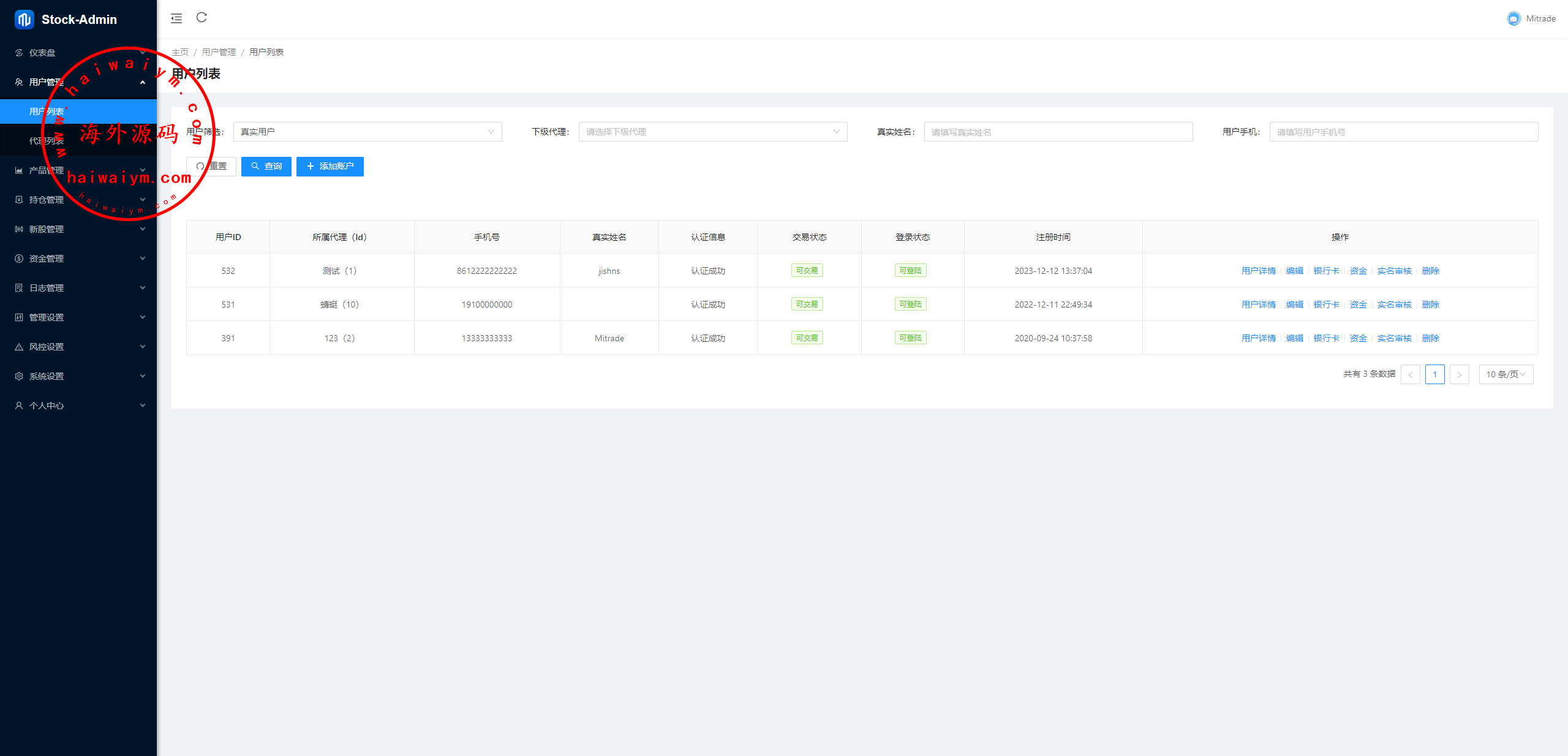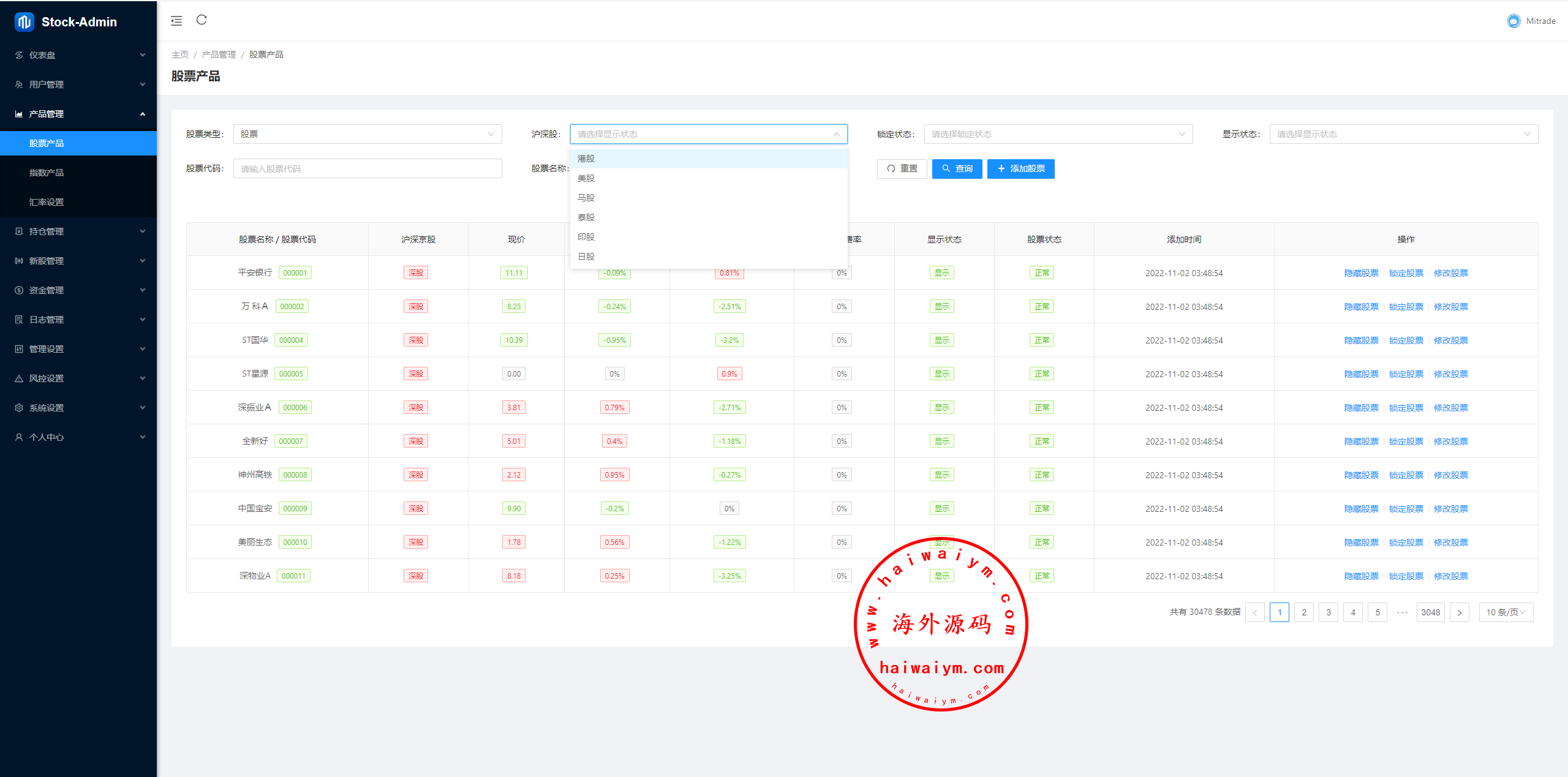JAVA综合盘全系股票系统,前端(VUE)包含:前台手端、总后台、代理后台,服务端java全开源带源码