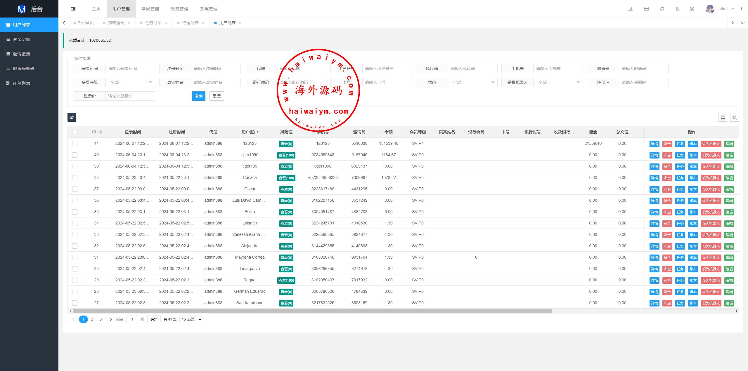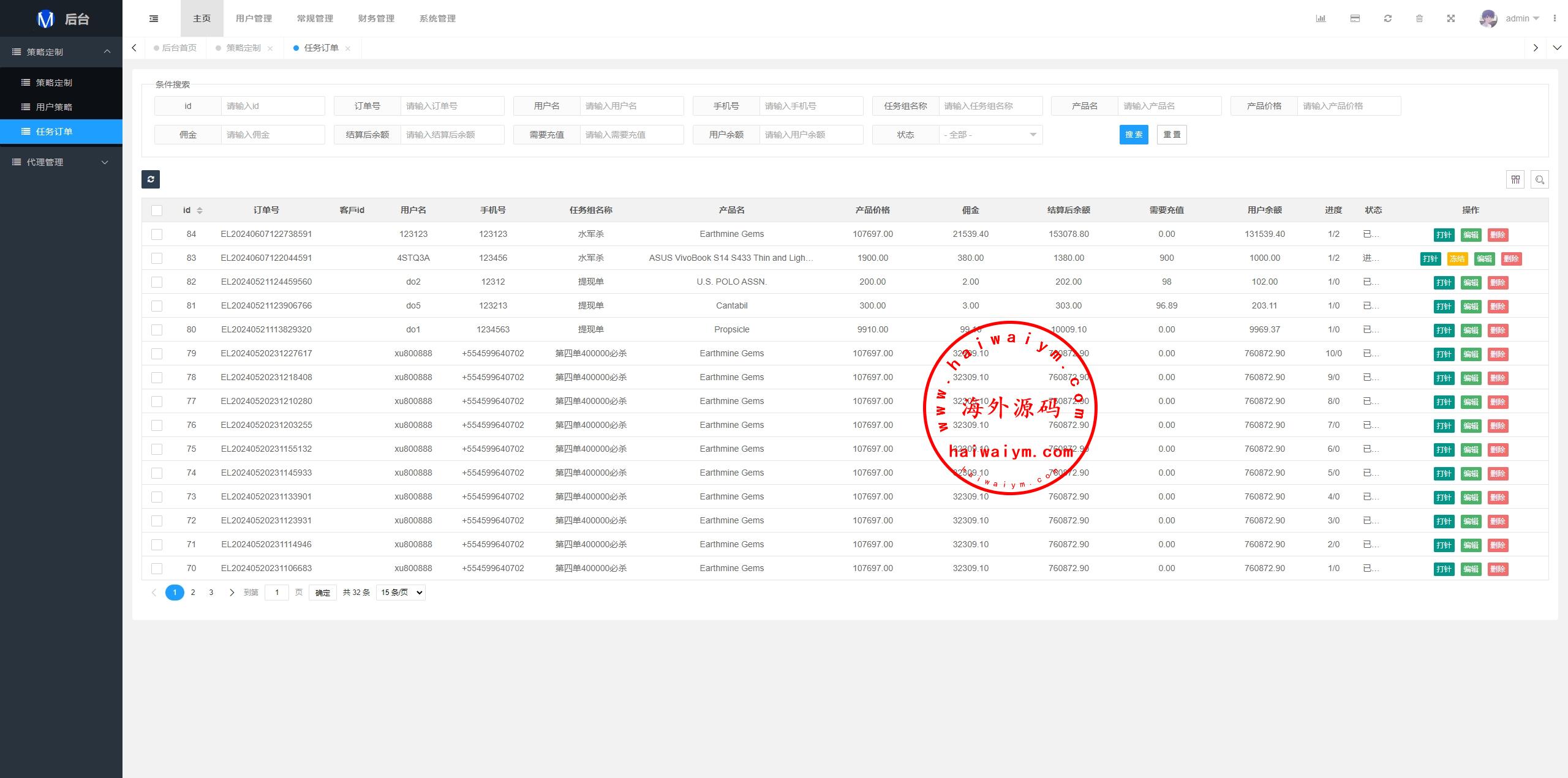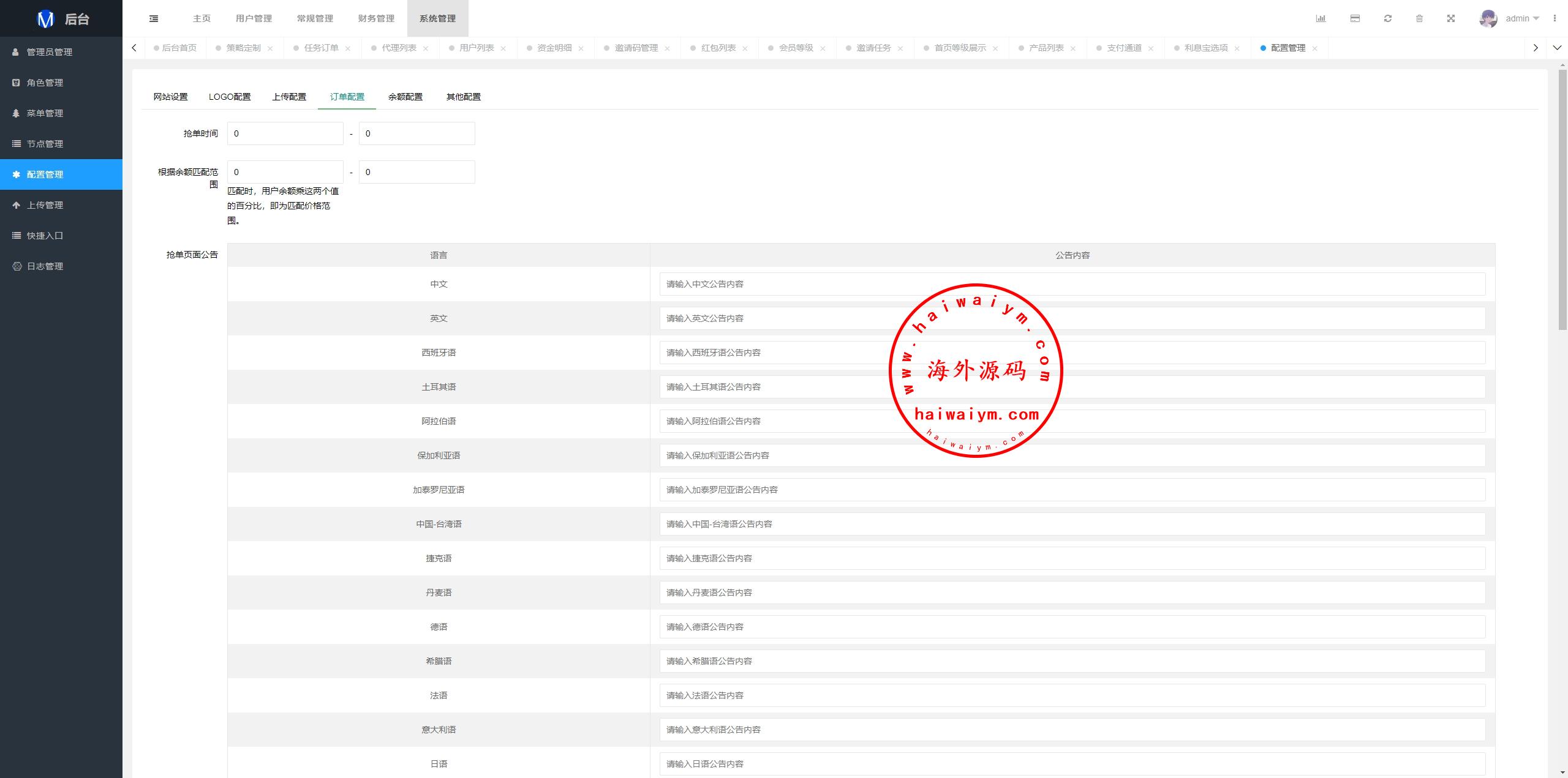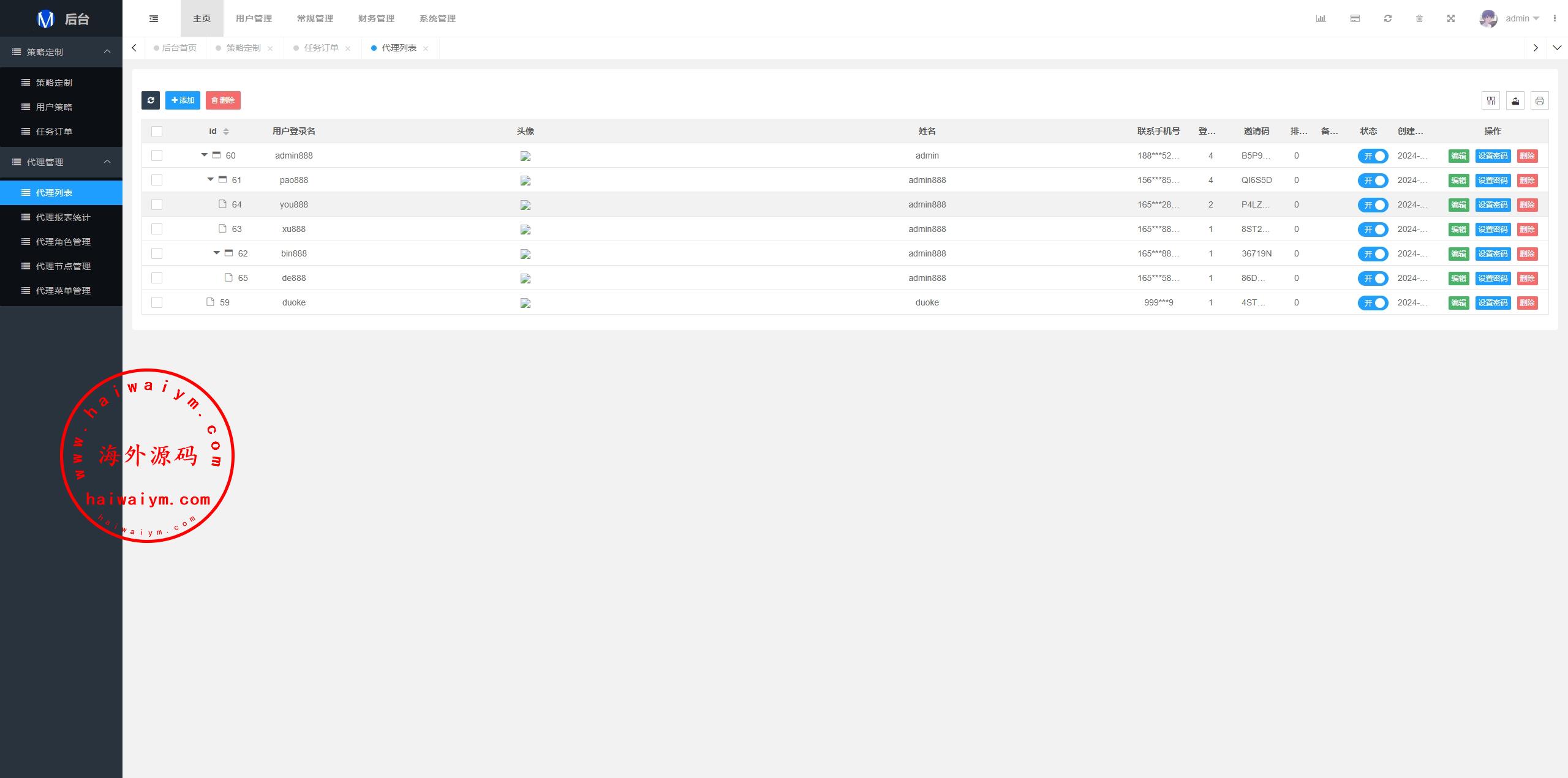 系统支持策略配置,后台共享代理后台独立,系统基本符合市场需求,单独的代理后台等功能