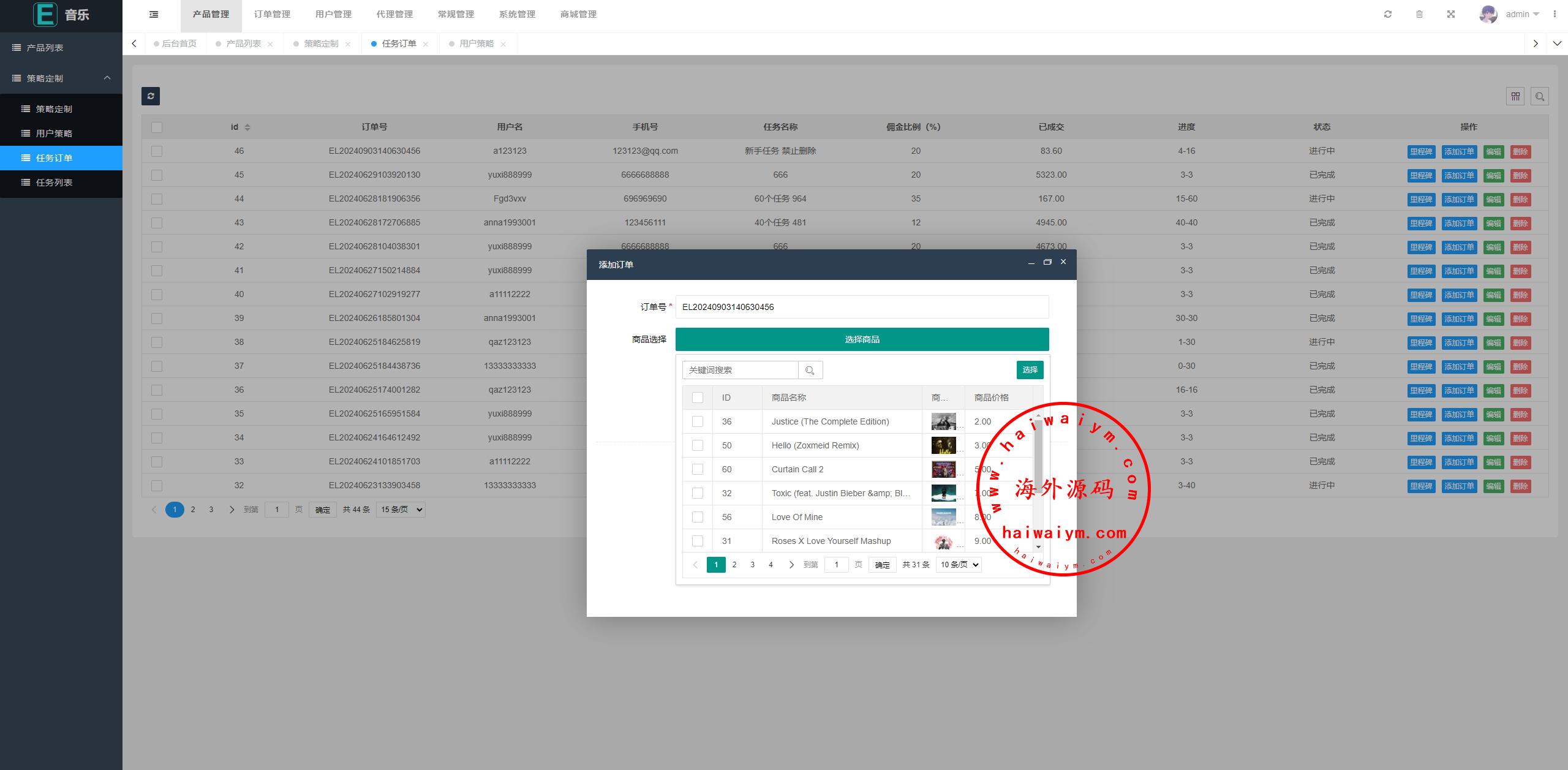 前端音乐定制UI,前端使用uinapp开发后端tp框架带源码系统支持用户策略定制派单,支持代理后台