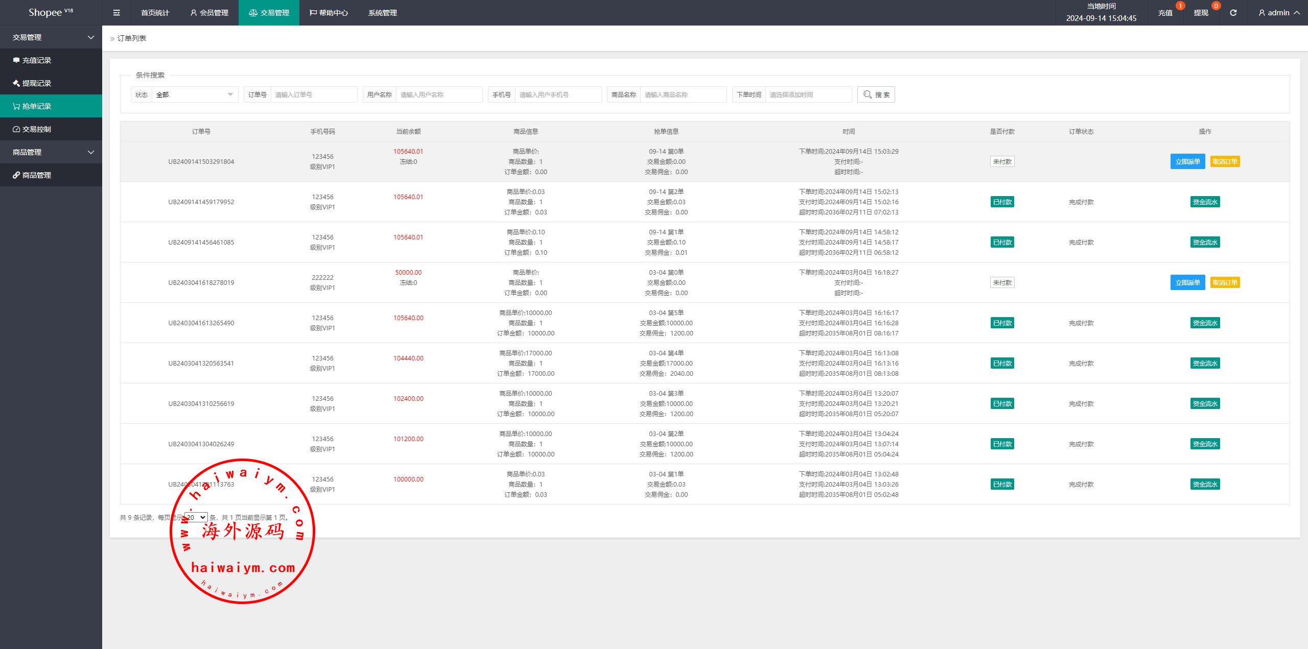 韩国抢单刷单系统/多语言刷单商城/打针/信用分/代理后台