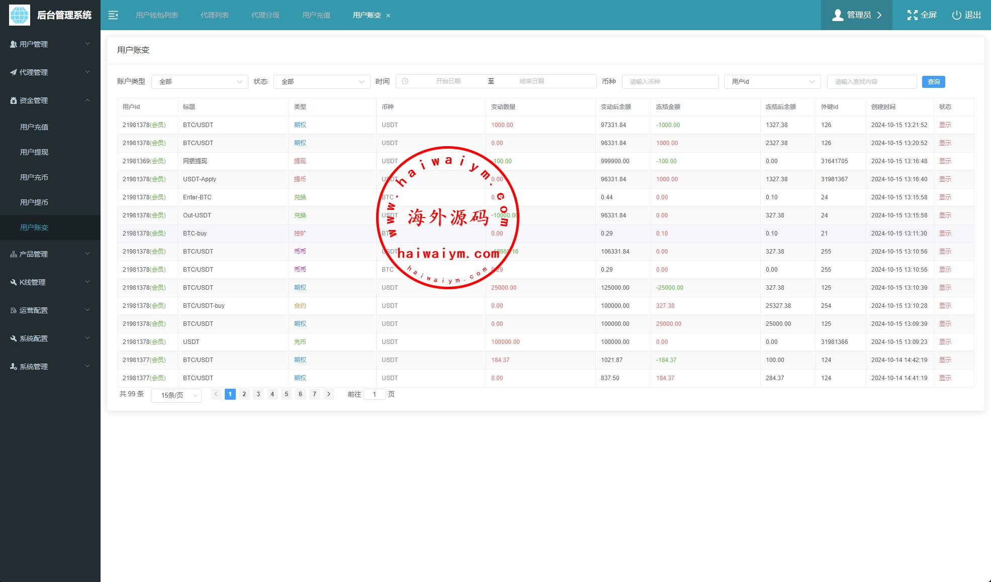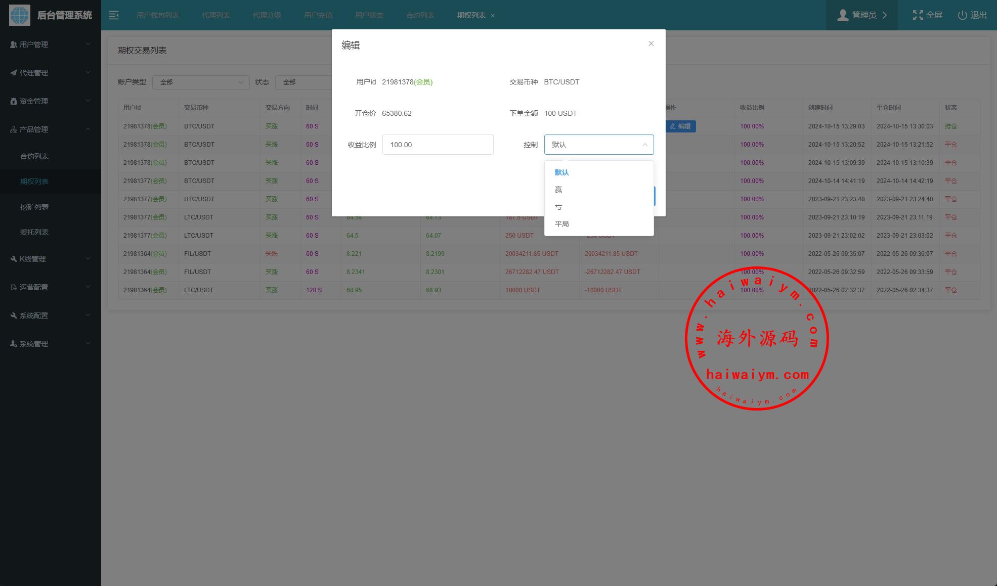 海外交易所系统/合约/期权/质押/秒合约/插针控制/申购